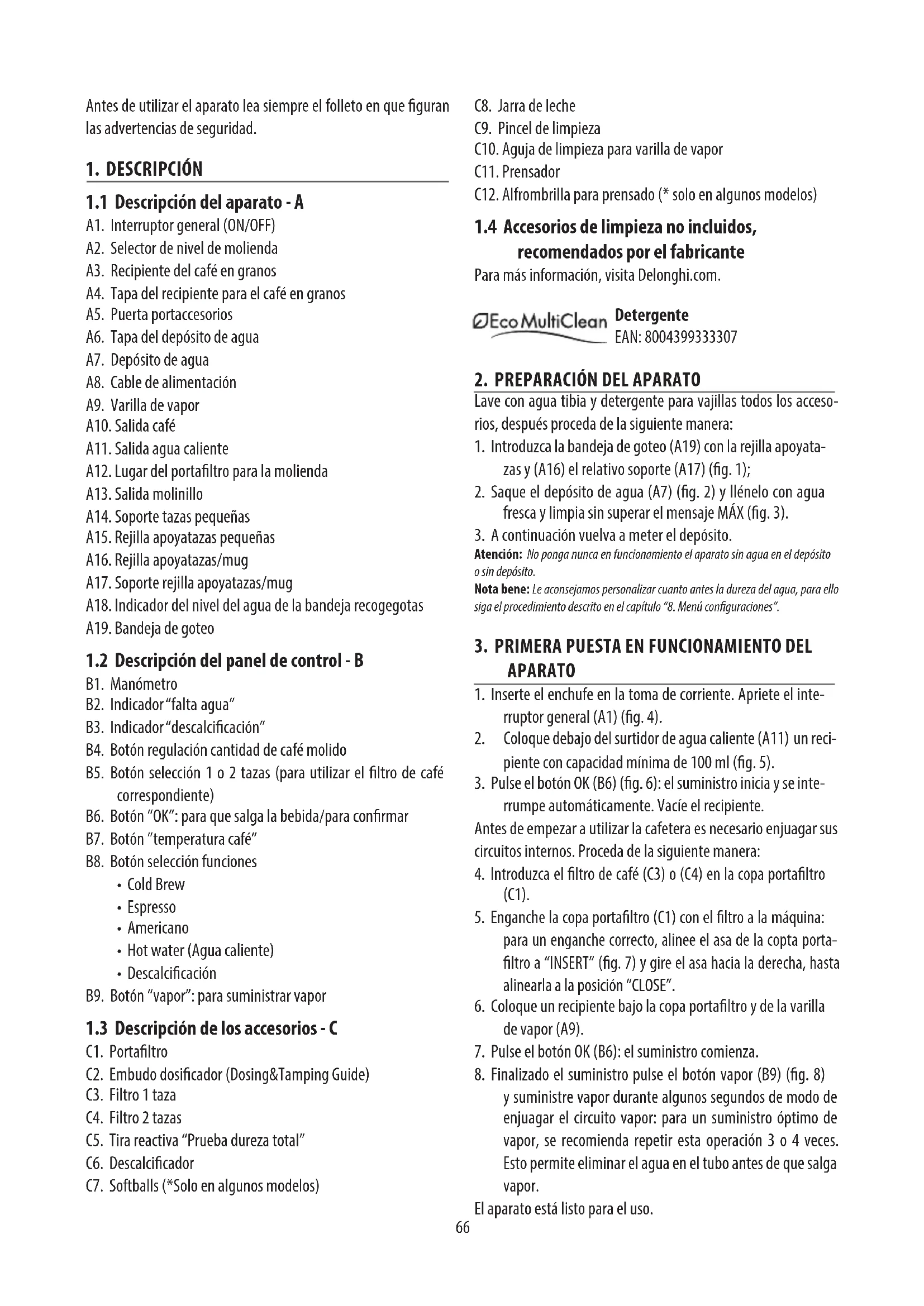 recomendados por el fabricante Para más información, visita Delonghi.com. Detergente EAN: 8004399333307