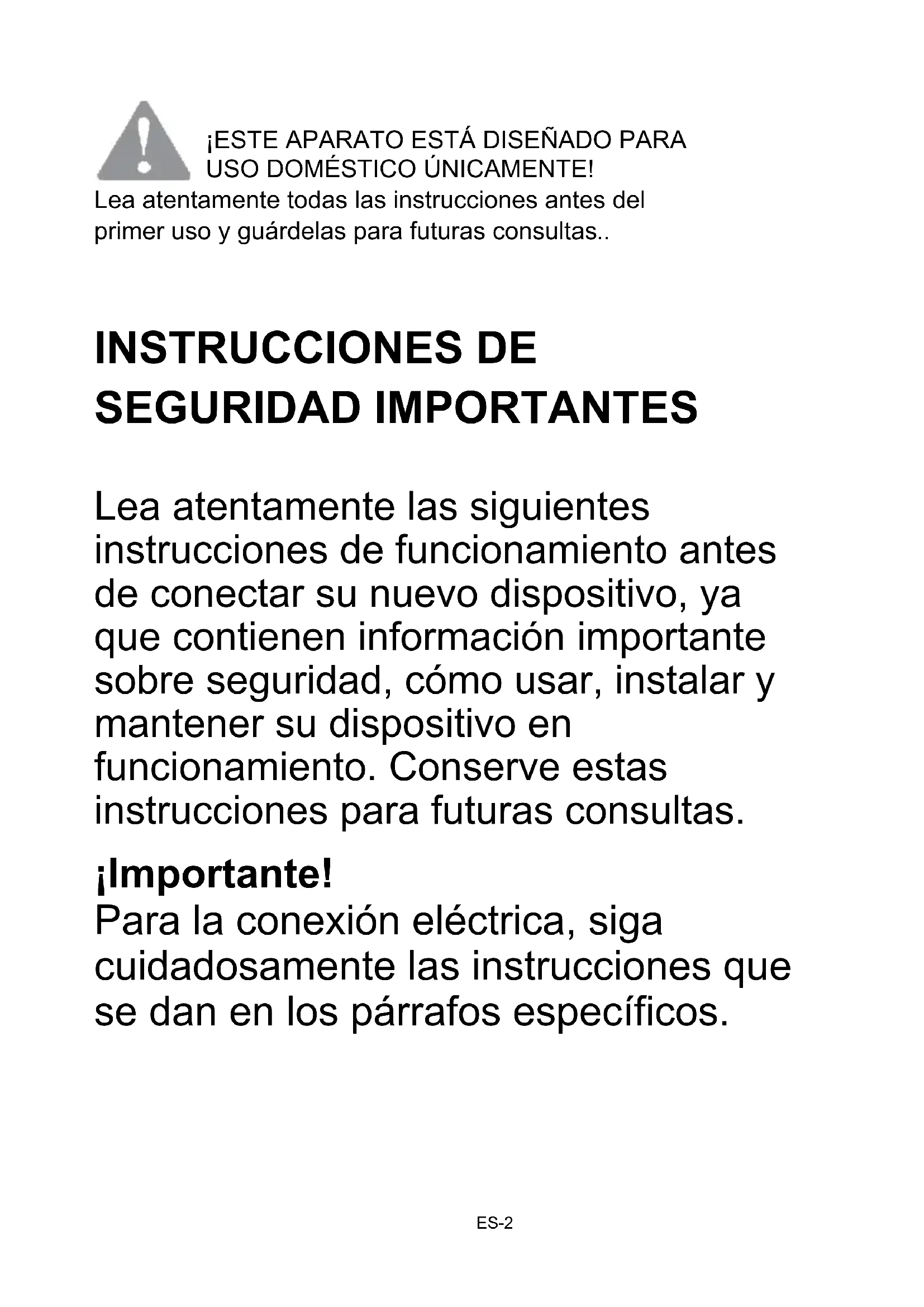 descarga eléctrica, nunca use este aparato con las manos mojadas o los pies descalzos sobre una superficie mojada. ES-828. No utilice el dispositivo al aire libre o en un lugar húmedo.