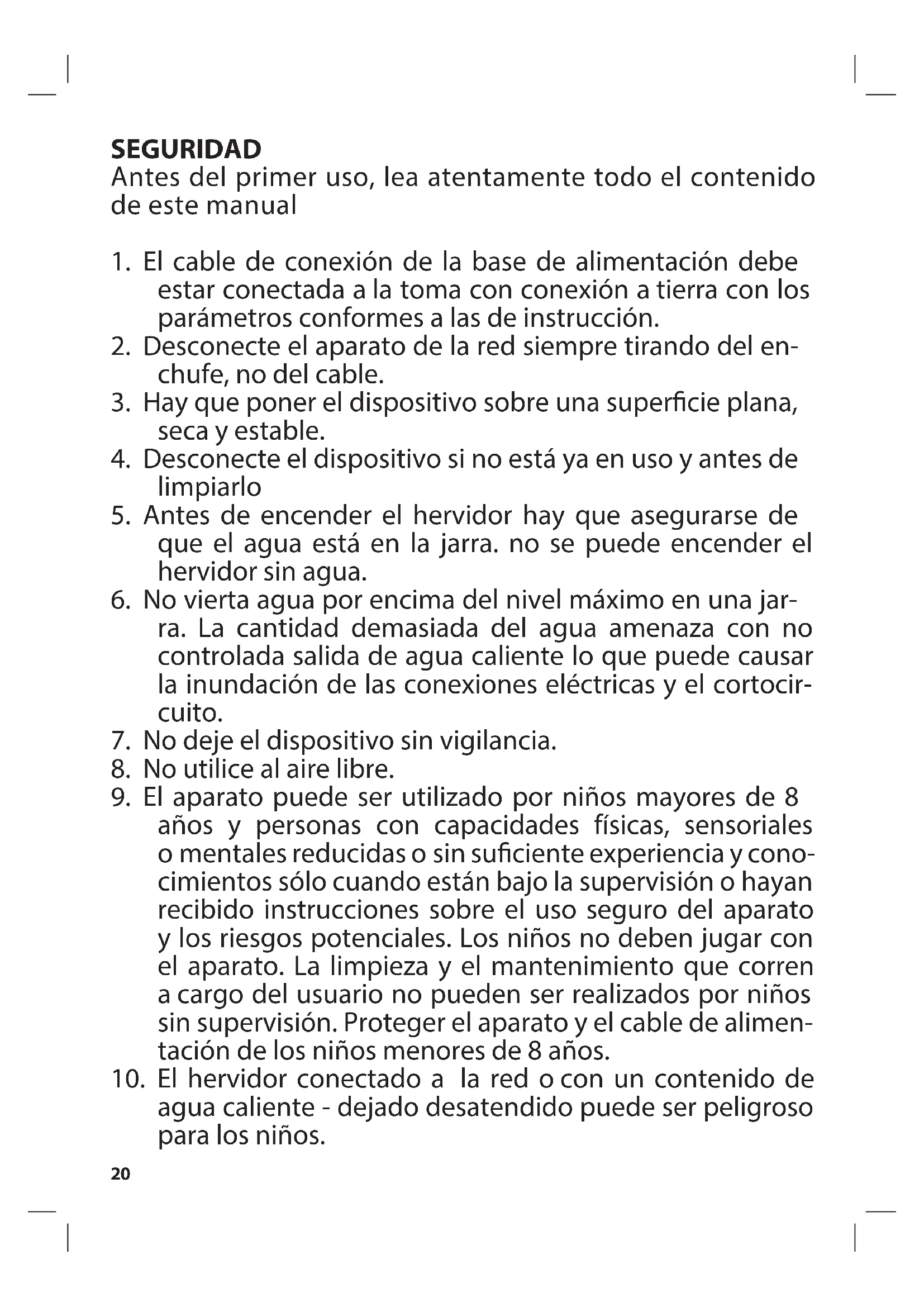 - .20 SEGURIDAD Antes del primer uso, lea atentamente todo el contenido de este manual