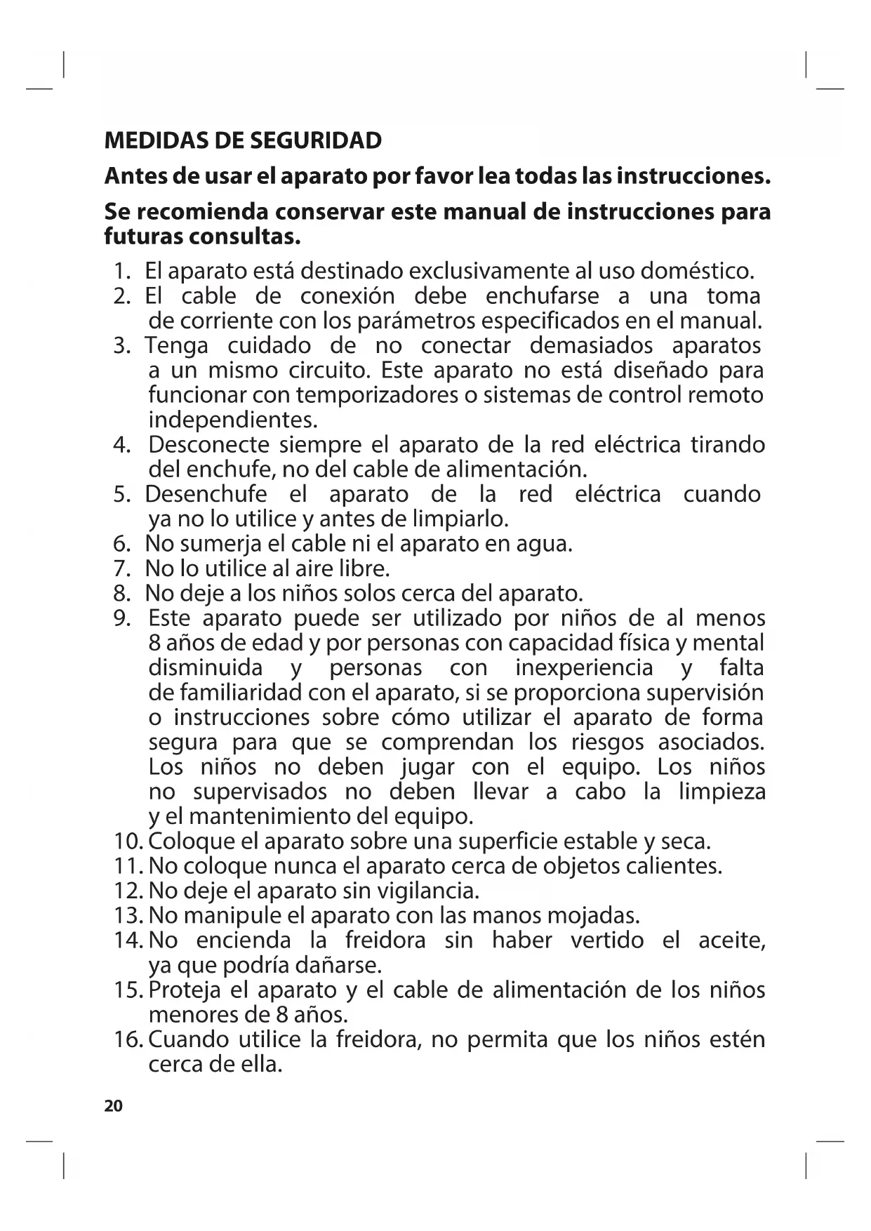 20. No vierta aceite fuera de la freidora caliente. Espere a que