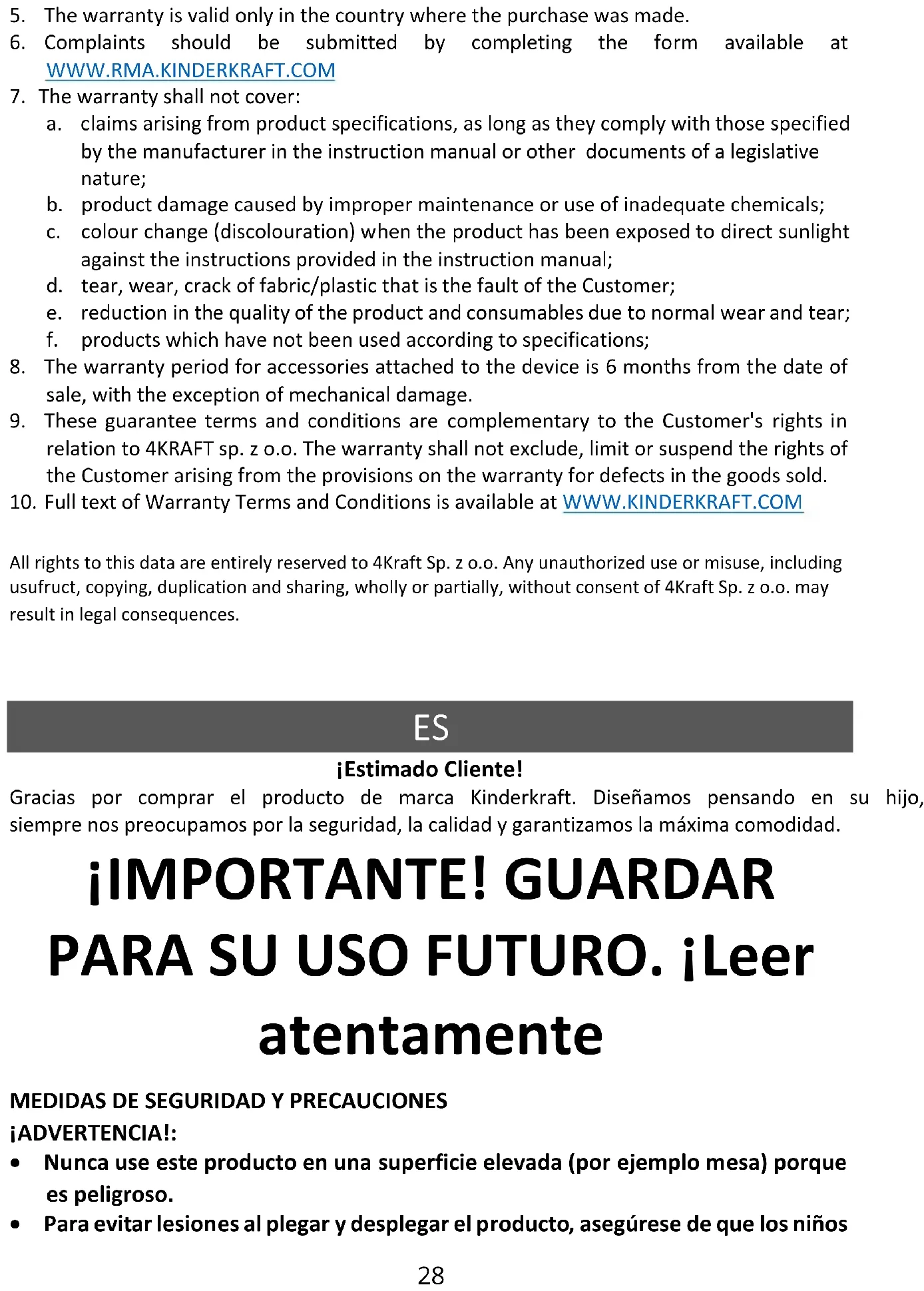 10. ElيtextoيcompletoيdeيlaيgarantíaيestáيdisponibleيenيelيsitioيwebيWWW.KINDERKRAFT.COM