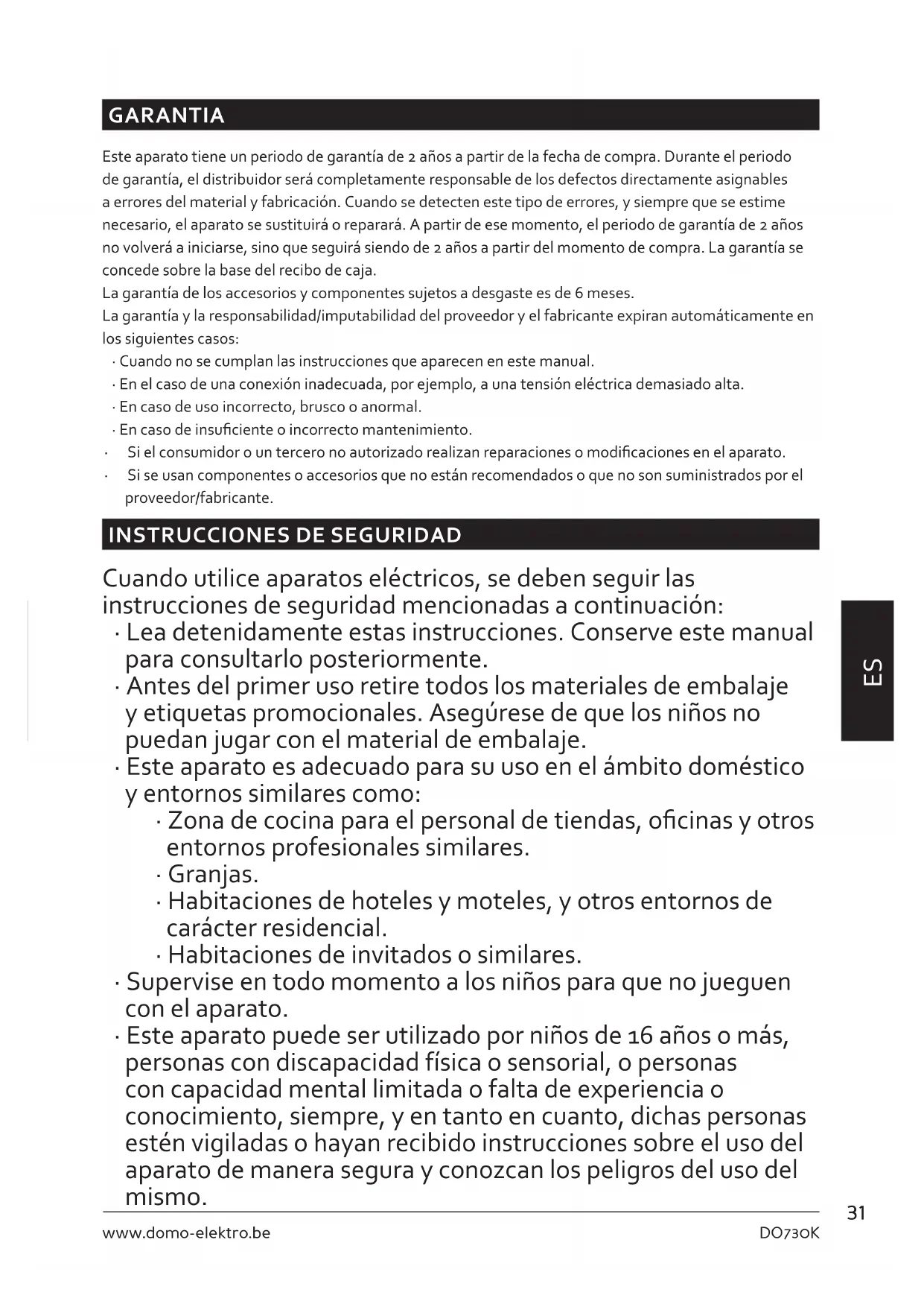 - El aparato no se puede utilizar con un cable alargador o con una regleta.33 DO730K www.domo-elektro.be