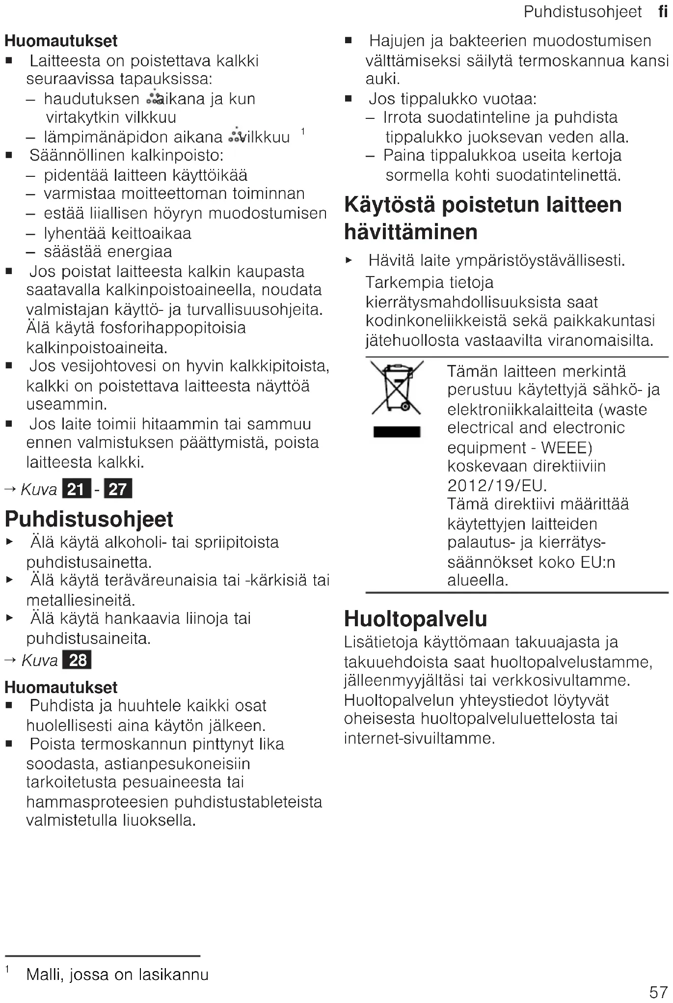 En función del modelo Preparar el aparato para el pri- mer uso Notas ¡ Realizar el primer ciclo de limpieza con una mezcla de 5 tazas de agua y 1 taza de vinagre. ¡ Antes de cada ciclo de lavado, apagar el aparato con la tecla de conexión/desco- nexión y dejar que se enfríe durante 5minutos. ¡ Llevar a cabo 2 veces el ciclo de lavado con 6tazas de agua sin añadir vinagre.