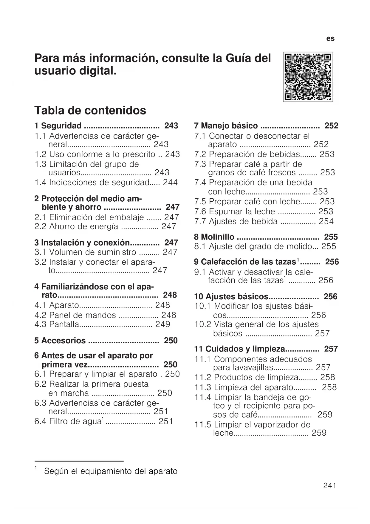 Para más información, consulte la Guía del usuario digital. Tabla de contenidos 1 Seguridad .................................243