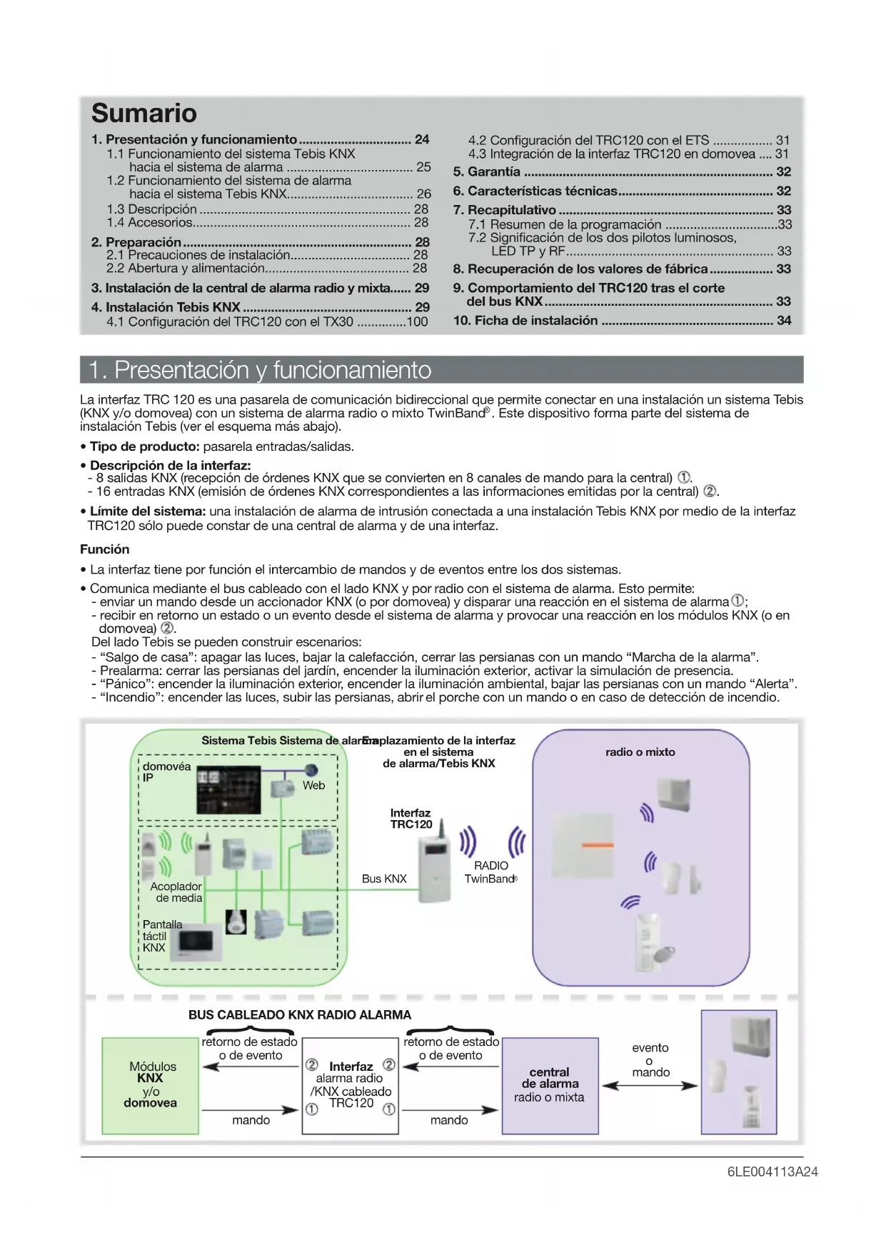 1.2 Funcionamiento del sistema de alarma hacia el sistema Tebis KNX6LE004113A27