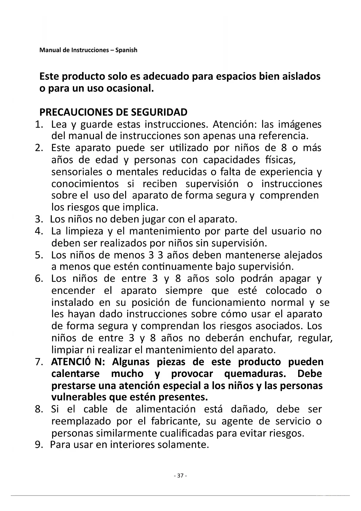 9. Para usar en interiores solamente.- 38 -