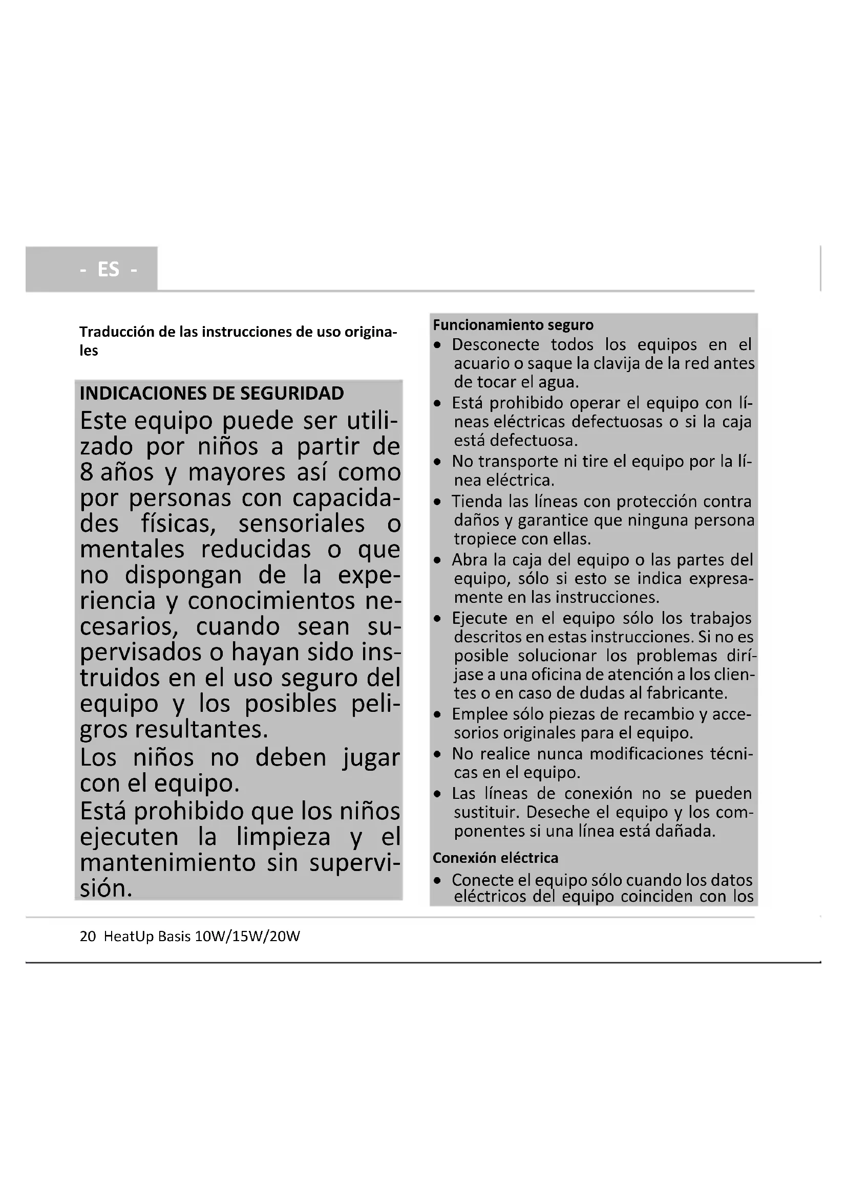 Uso conforme a lo prescrito HeatUp Basis 10W/15W/20Wen lo sucesivo, "el equipo", solo puede utilizarse de la siguiente ma- nera: