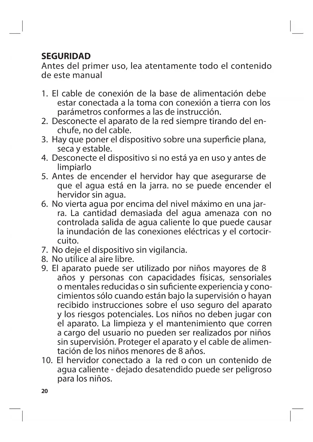 - .20 SEGURIDAD Antes del primer uso, lea atentamente todo el contenido de este manual
