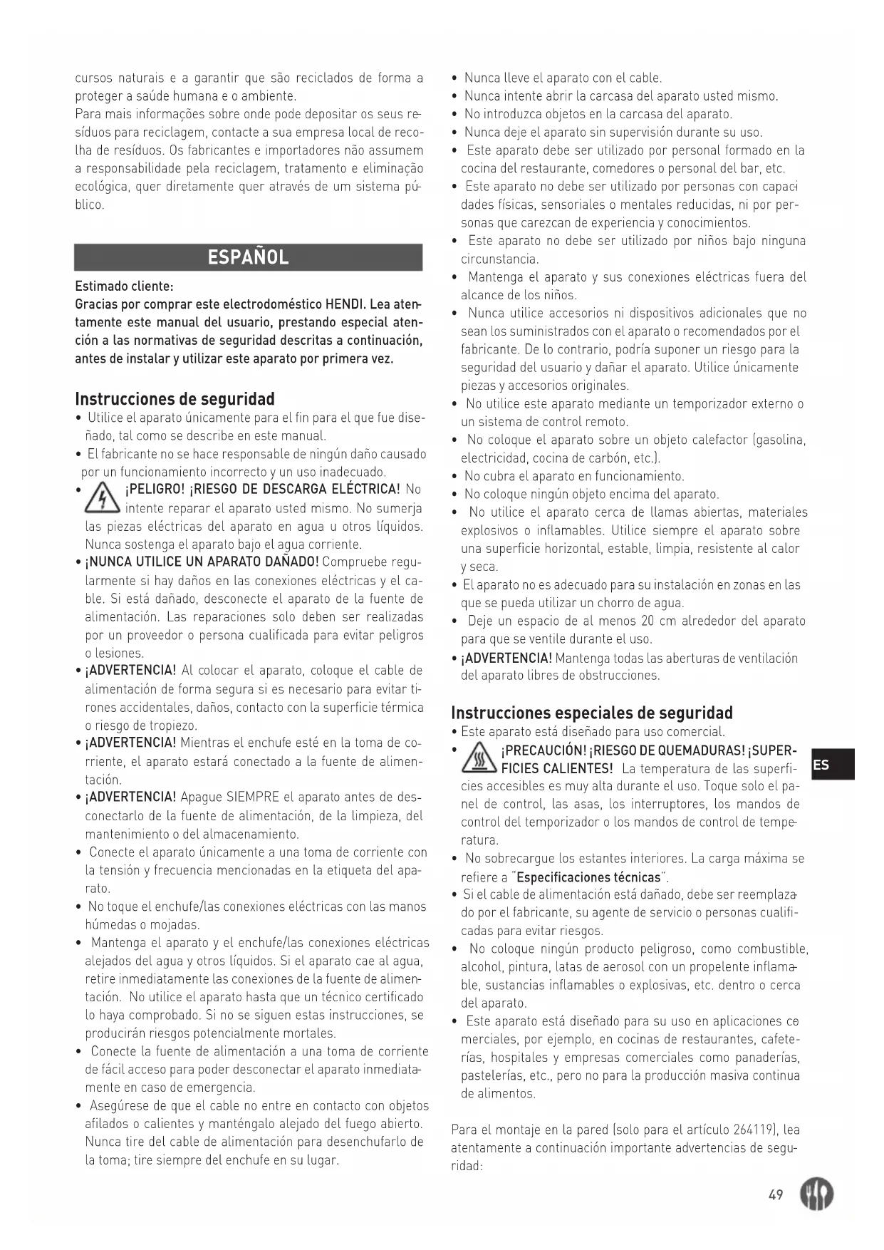 blico. ESPAÑOL Estimado cliente: Gracias por comprar este electrodoméstico HENDI. Lea aten