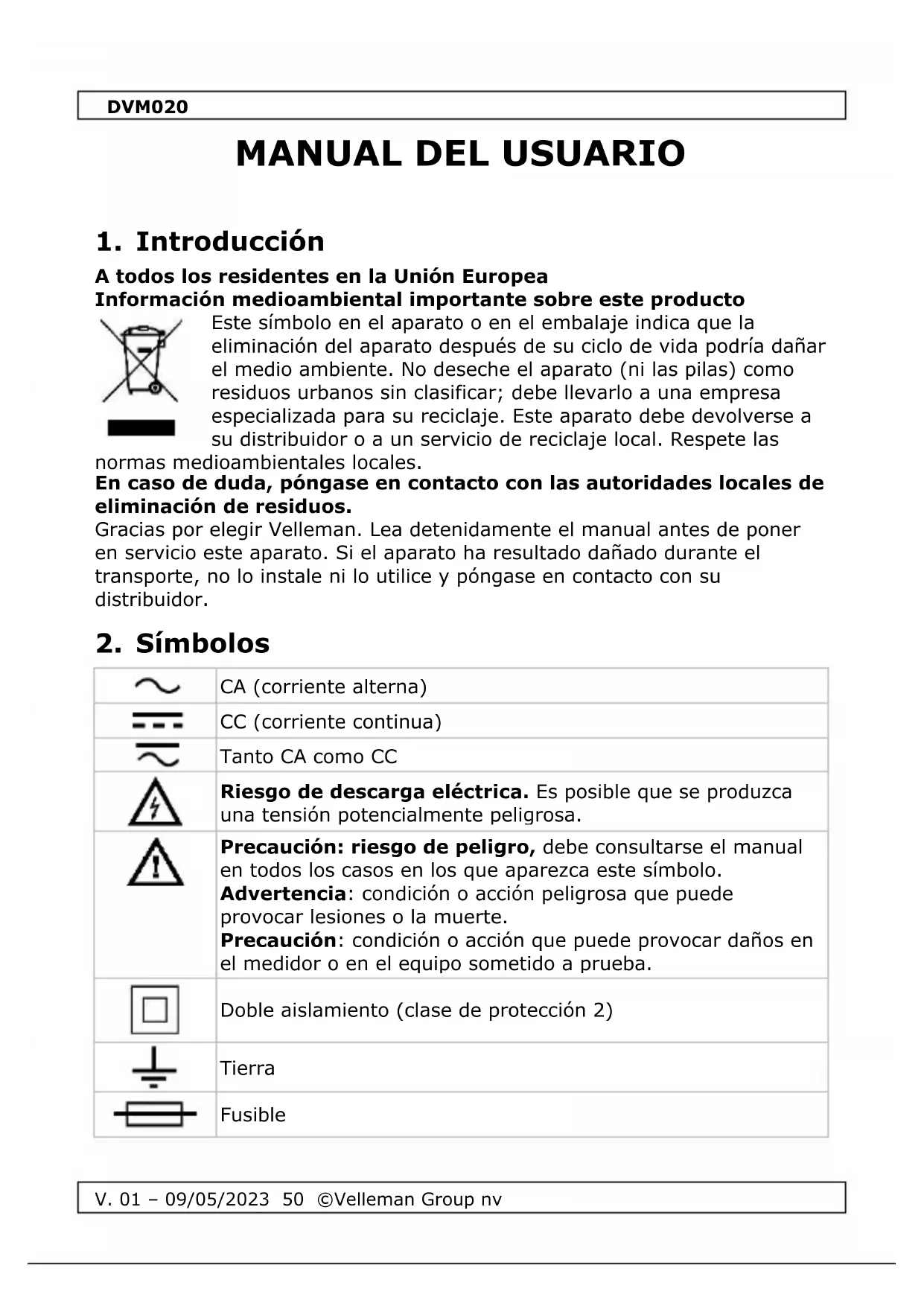 Encuentra gratis el manual del aparato DVM020 VELLEMAN en formato PDF.