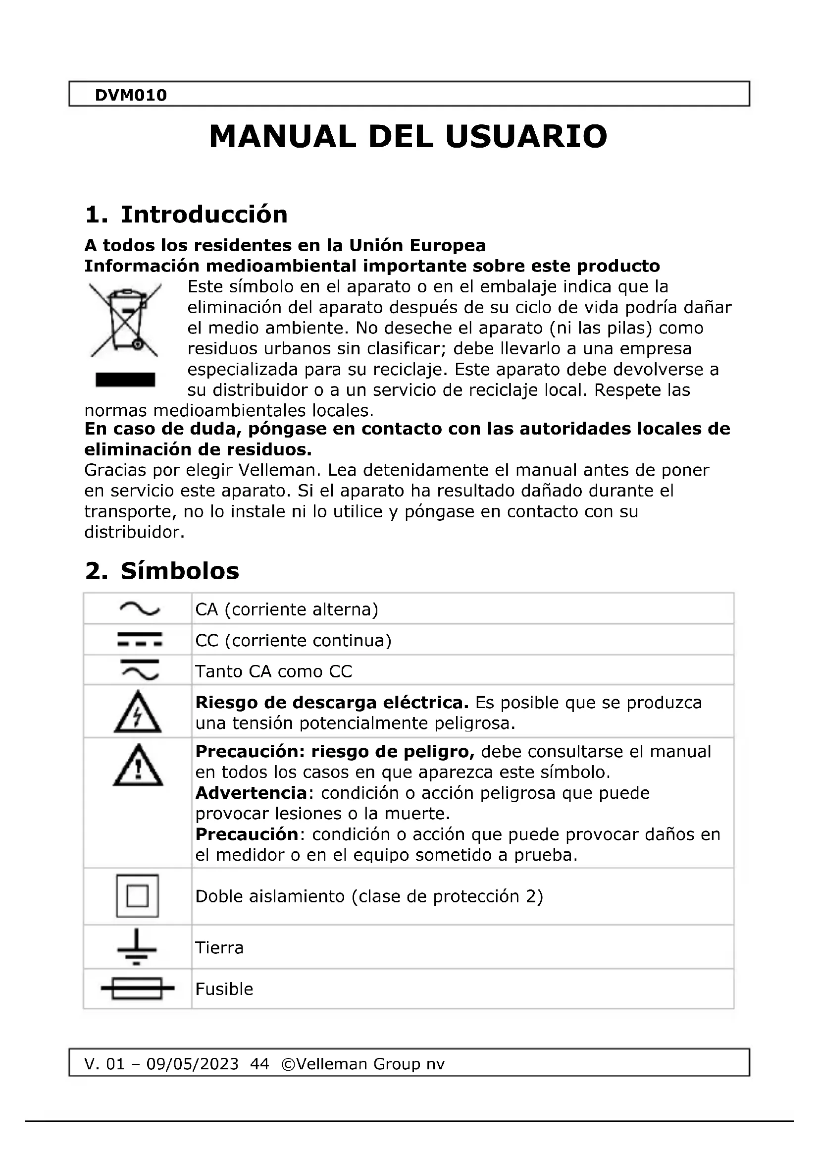 Encuentra gratis el manual del aparato DVM010 VELLEMAN en formato PDF.