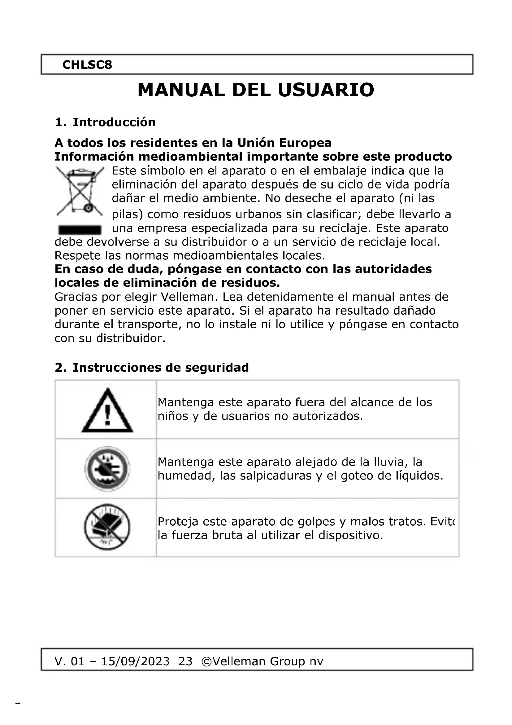 Encuentra gratis el manual del aparato CHLSC8 VELLEMAN en formato PDF.