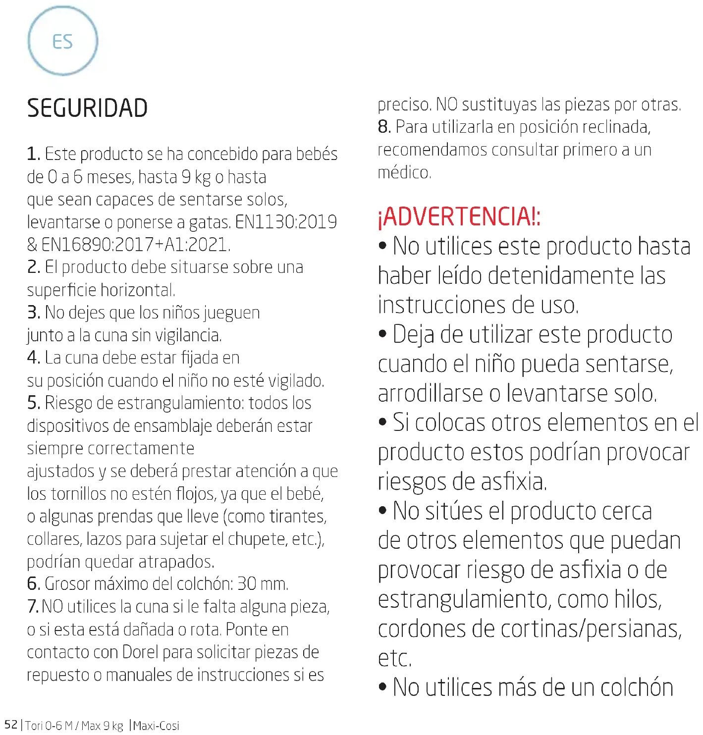 Maxi-Cosi del servicio. Lo más sencillo es que nos solicite directamente la aprobación previa del servicio. Si presenta una reclamación conforme a lo establecido en la presente garantía, le pediremos que devuelva el producto al distribuidor o establecimiento autorizado o que nos haga llegar el producto de acuerdo con nuestras instrucciones. Si se llevan a cabo todos los pasos indicados, no tendrá que abonar ningún gasto de envío ni de devolución del producto. Los daños y/o defectos que no estén cubiertos por la garantía, ni por los derechos legales del consumidor, y/o los daños o defectos en productos que no estén cubiertos por nuestra garantía se podrán solucionar a una tarifa razonable. Derechos del consumidor: El consumidor dispone de los derechos aplicables de acuerdo con la legislación vigente, que pueden diferir de un país a otro. Los derechos que posea el consumidor según la legislación nacional aplicable no se verán afectados por la presente garantía. Esta garantía ha sido remitida por Dorel Netherlands, empresa inscrita en los Países Bajos con el número de registro 17060920. La sede social se encuentra en Korendijk 5, 5704 RD Helmond, Países Bajos, y la dirección postal es: P.O. Box 6071, 5700 ET Helmond, Países Bajos. En la última página del presente manual, así como en el sitio web de la marca, se indican los nombres y direcciones de otras filiales del grupo Dorel. (1) Los productos adquiridos en tiendas o distribuidores que eliminen o modifiquen las etiquetas o números de identificación, se considerarán no autorizados. No se aplicará garantía alguna a estos productos ya que no se podrá comprobar su autenticidad. ESMaxi-Cosi