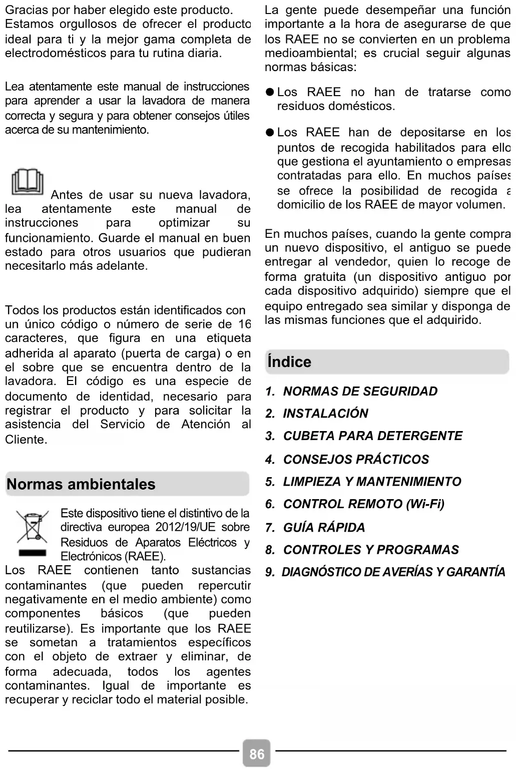 Lea atentamente este manual de instrucciones para aprender a usar la lavadora de manera correcta y segura y para obtener consejos útiles acerca de su mantenimiento.
