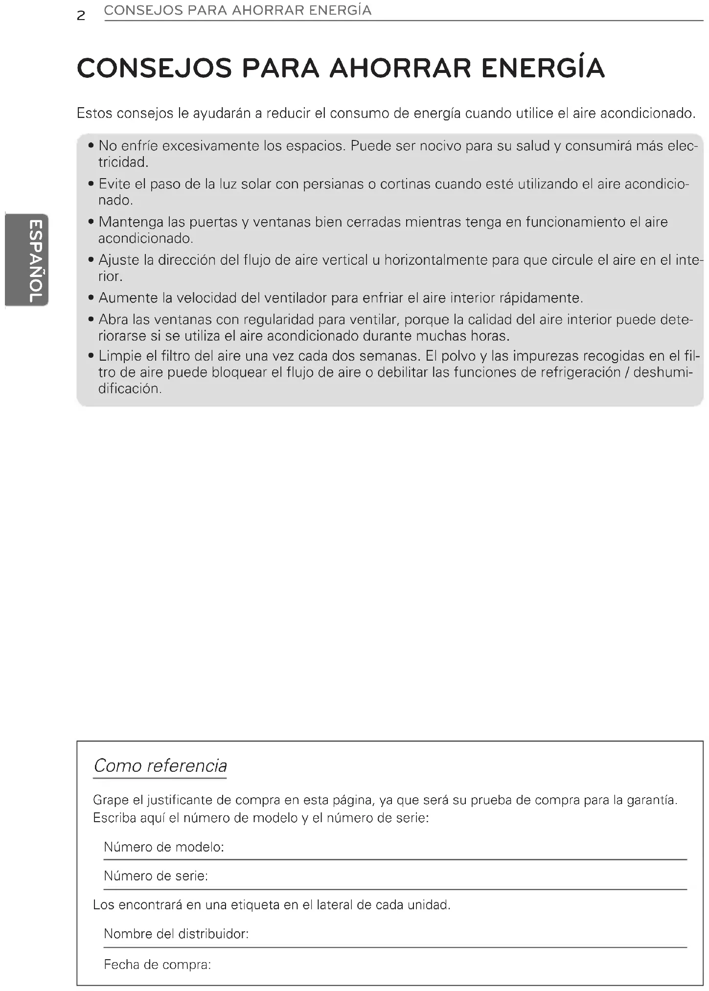 ESPAÑOL Estos consejos le ayudarán a reducir el consumo de energía cuando utilice el aire acondicionado.