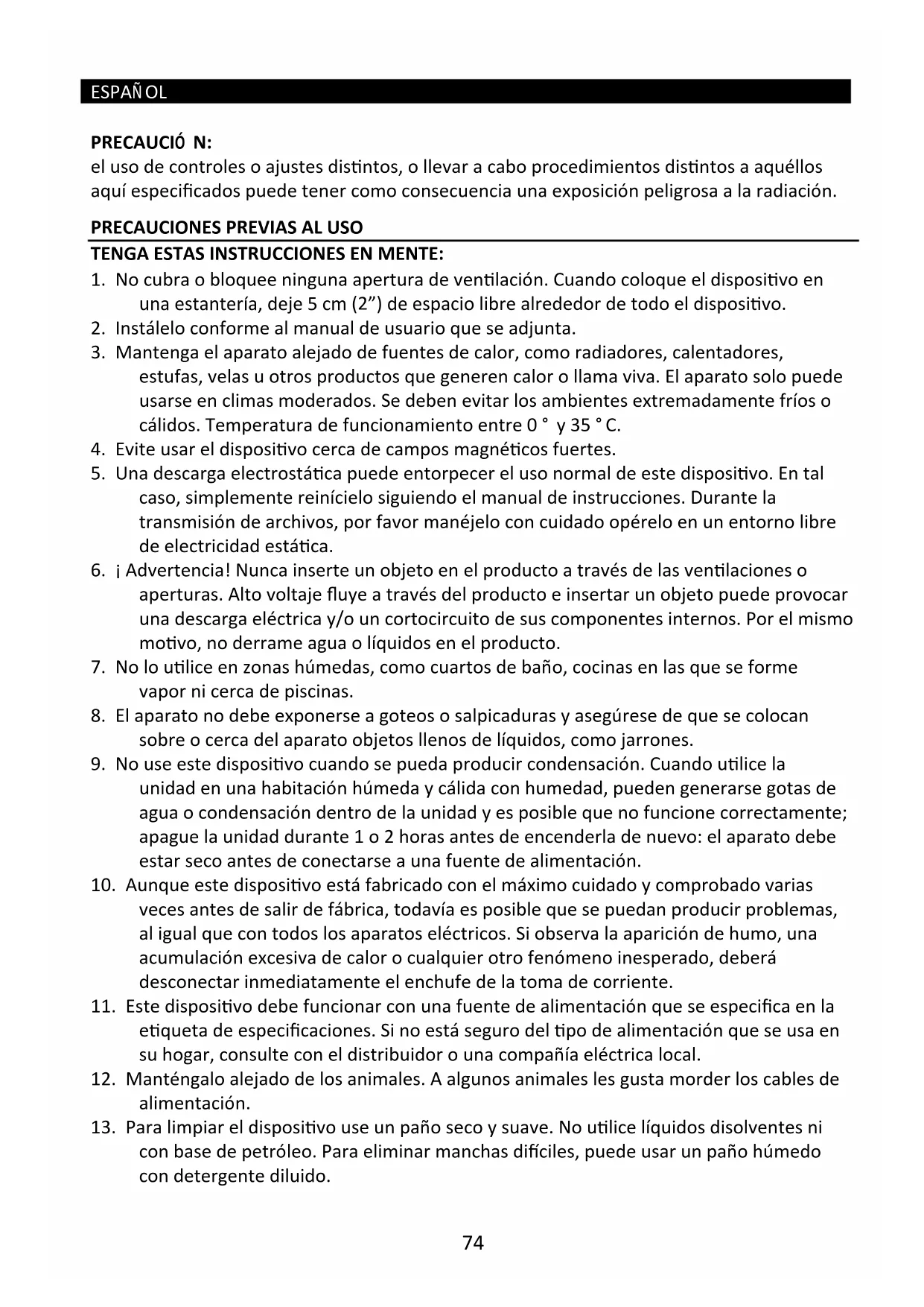 13. Para limpiar el dispositivo use un paño seco y suave. No utilice líquidos disolventes ni
