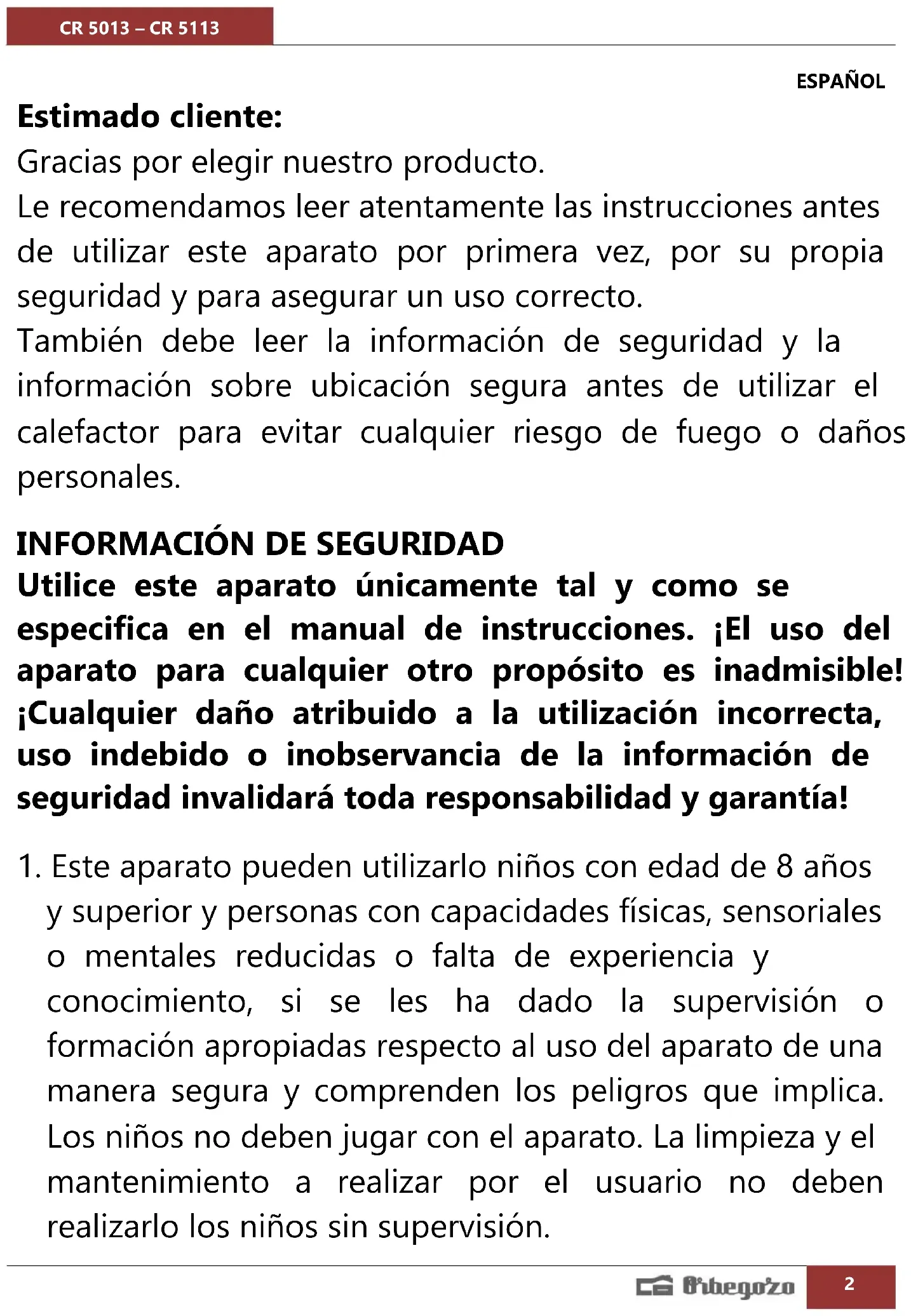 CR 5113 - Calefacción Orbegozo - Manual de uso y guía de instrucciones gratis