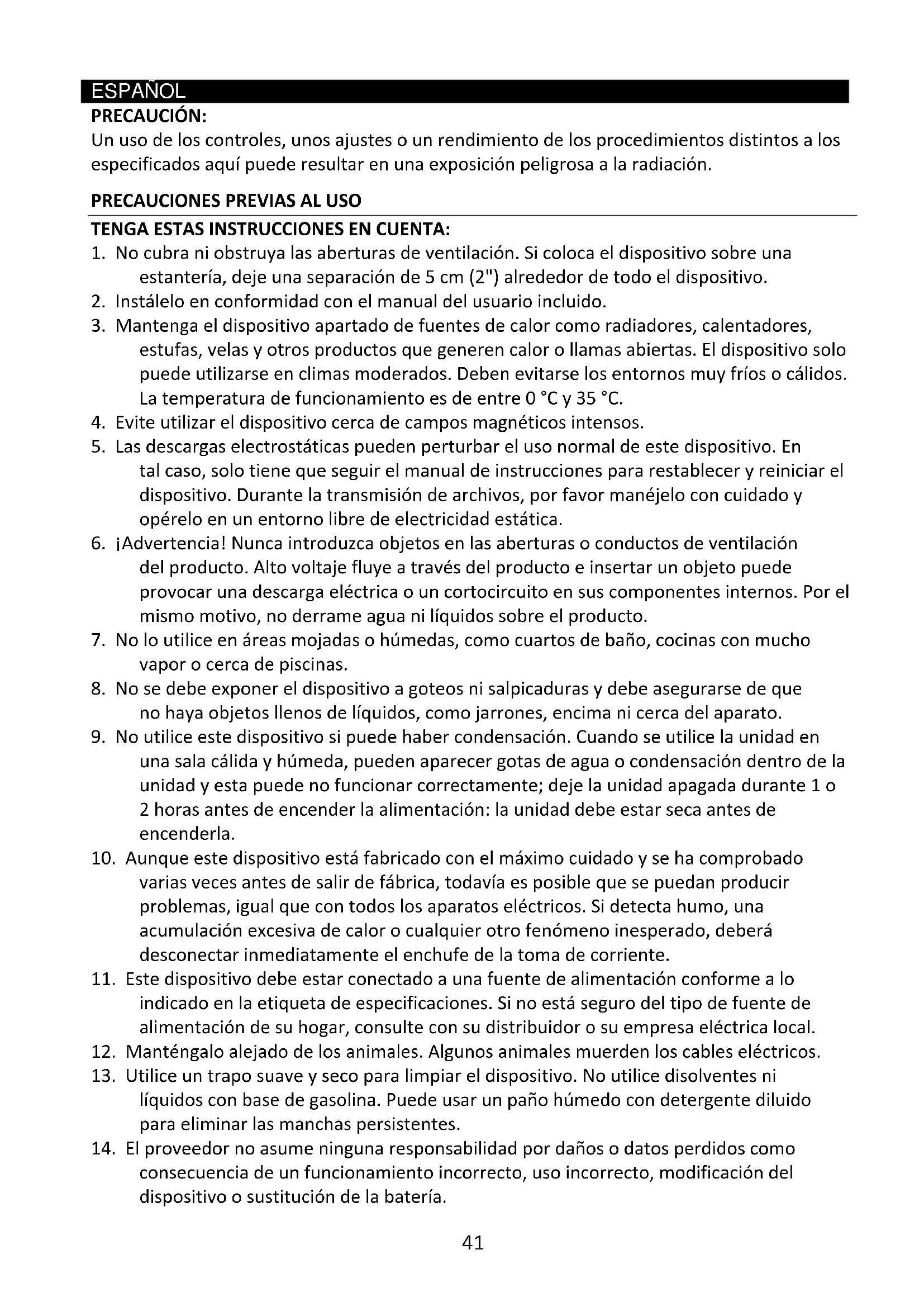 consecuencia de un funcionamiento incorrecto, uso incorrecto, modificación del dispositivo o sustitución de la batería.42