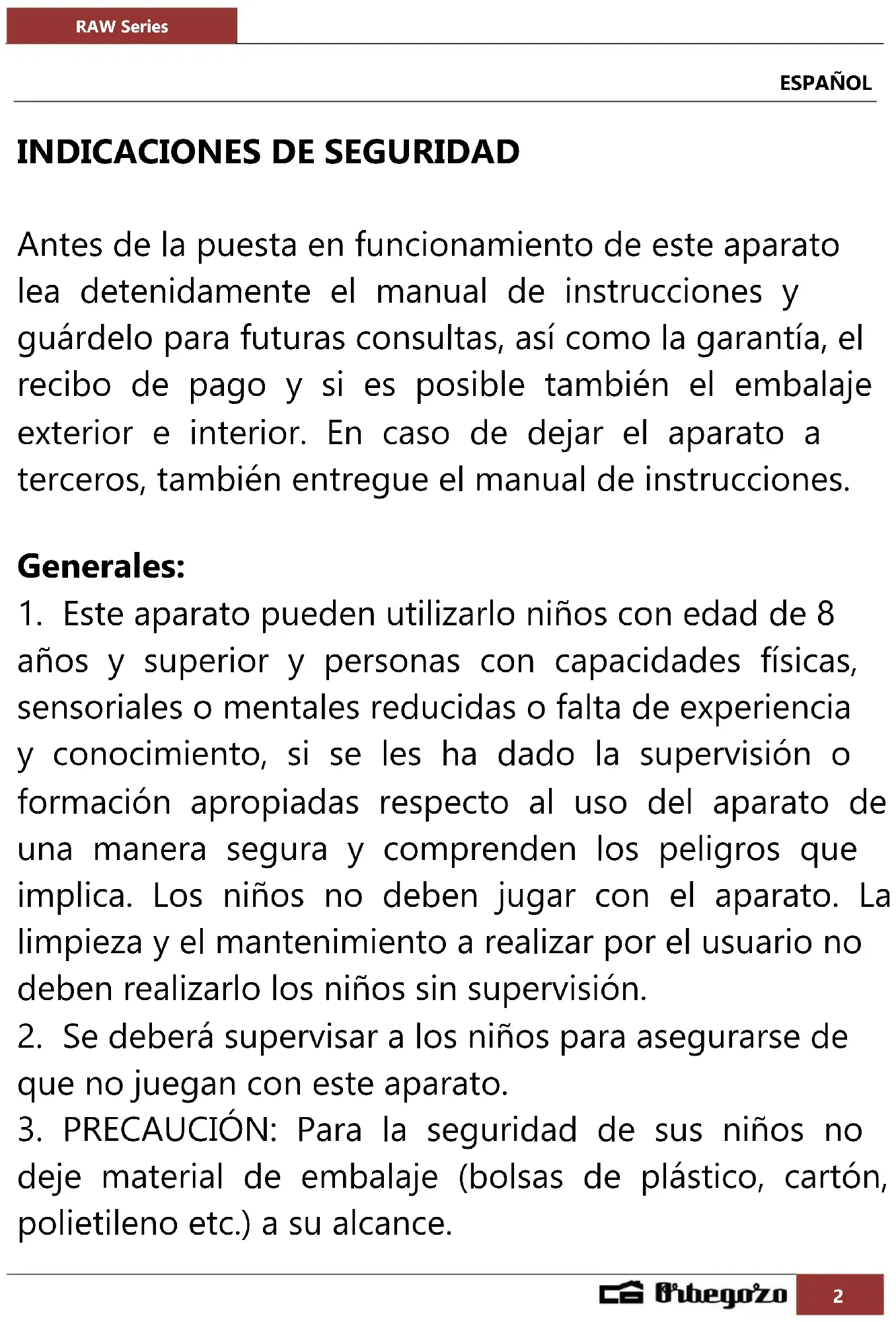 MANUAL DE USUARIO RAW 2000 Orbegozo
