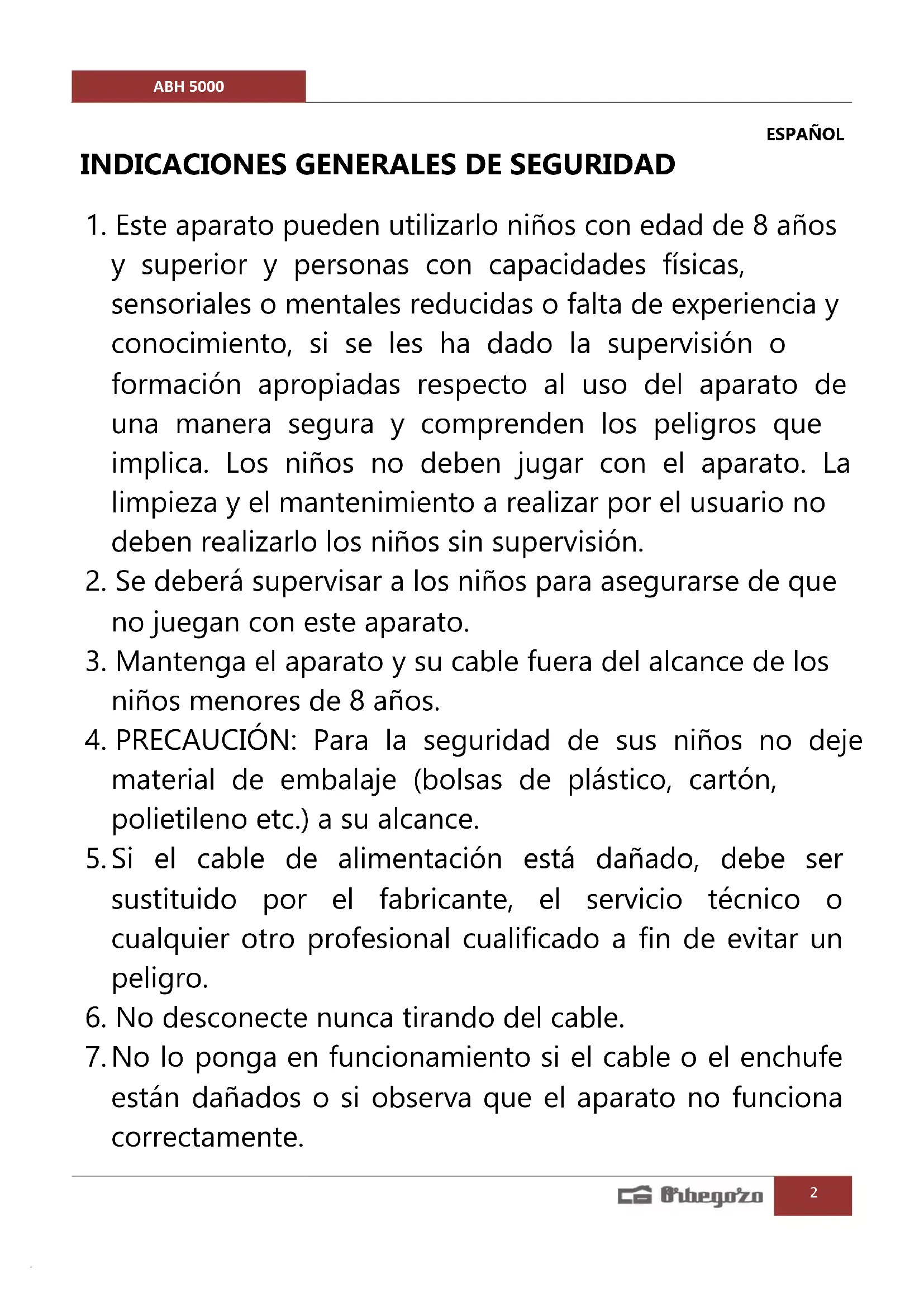 MANUAL DE USUARIO AHB 5000 Orbegozo