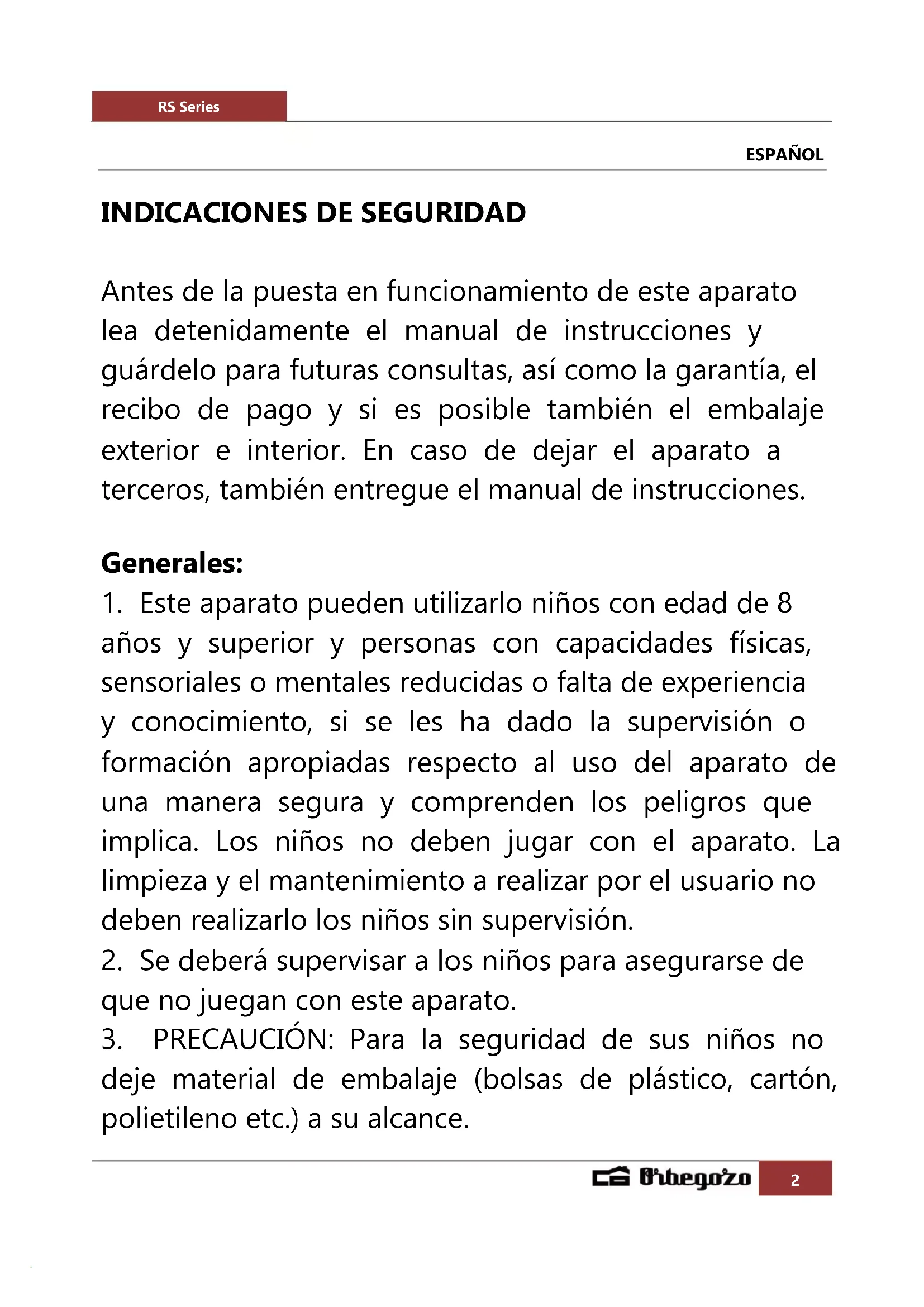 MANUAL DE USUARIO RS 2000 Orbegozo