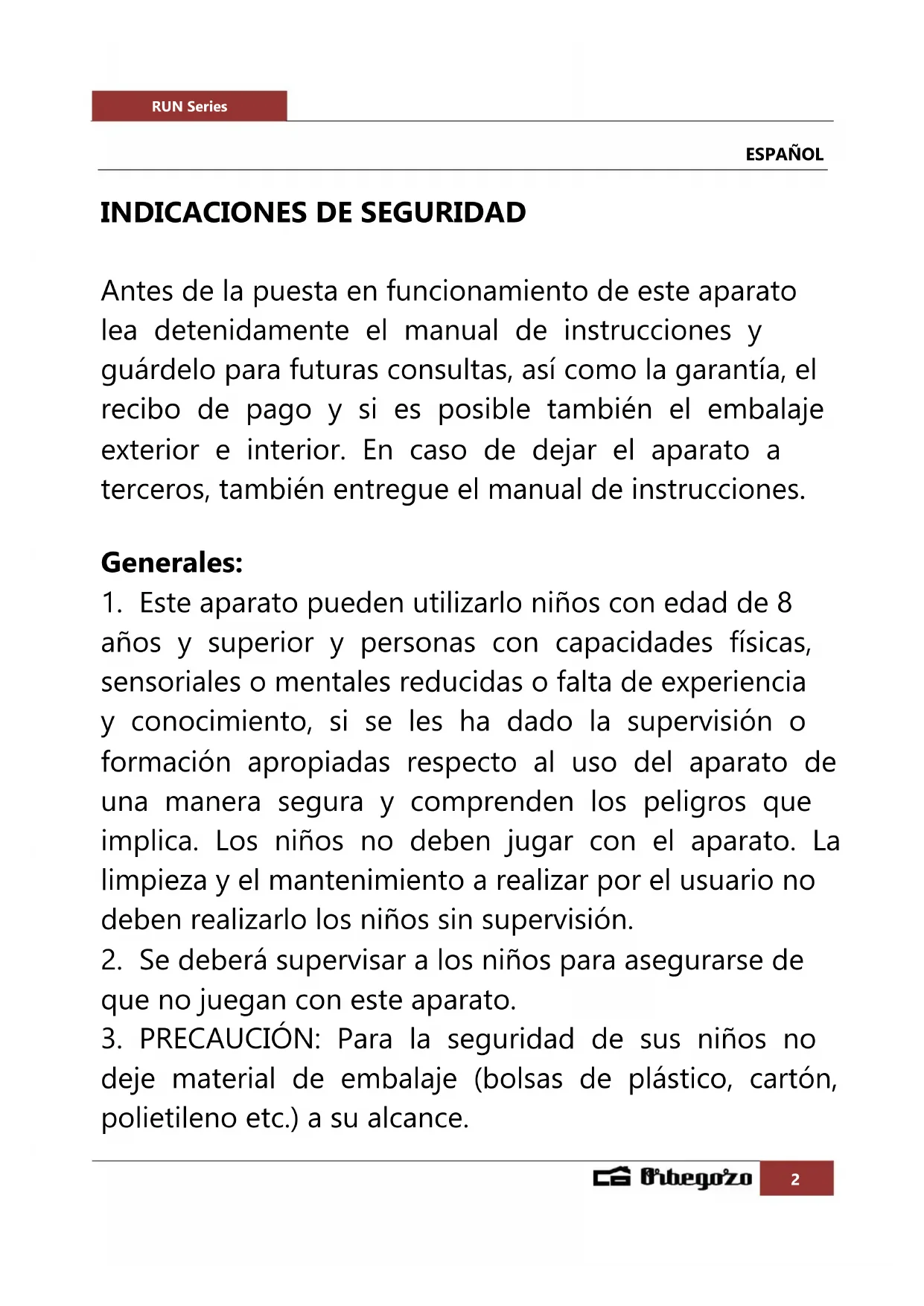 MANUAL DE USUARIO RUN 2500 Orbegozo