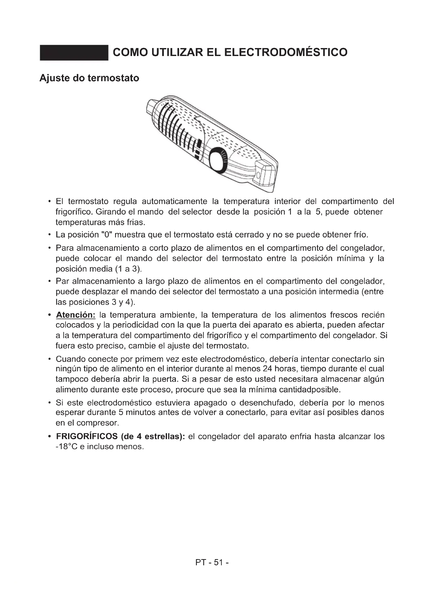 - FRIGORÍFICOS (de 4 estrellas): el congelador del aparato enfria hasta alcanzar los -18°C e incluso menos.PT - 52 - Indicador de "Puerta Abierta"