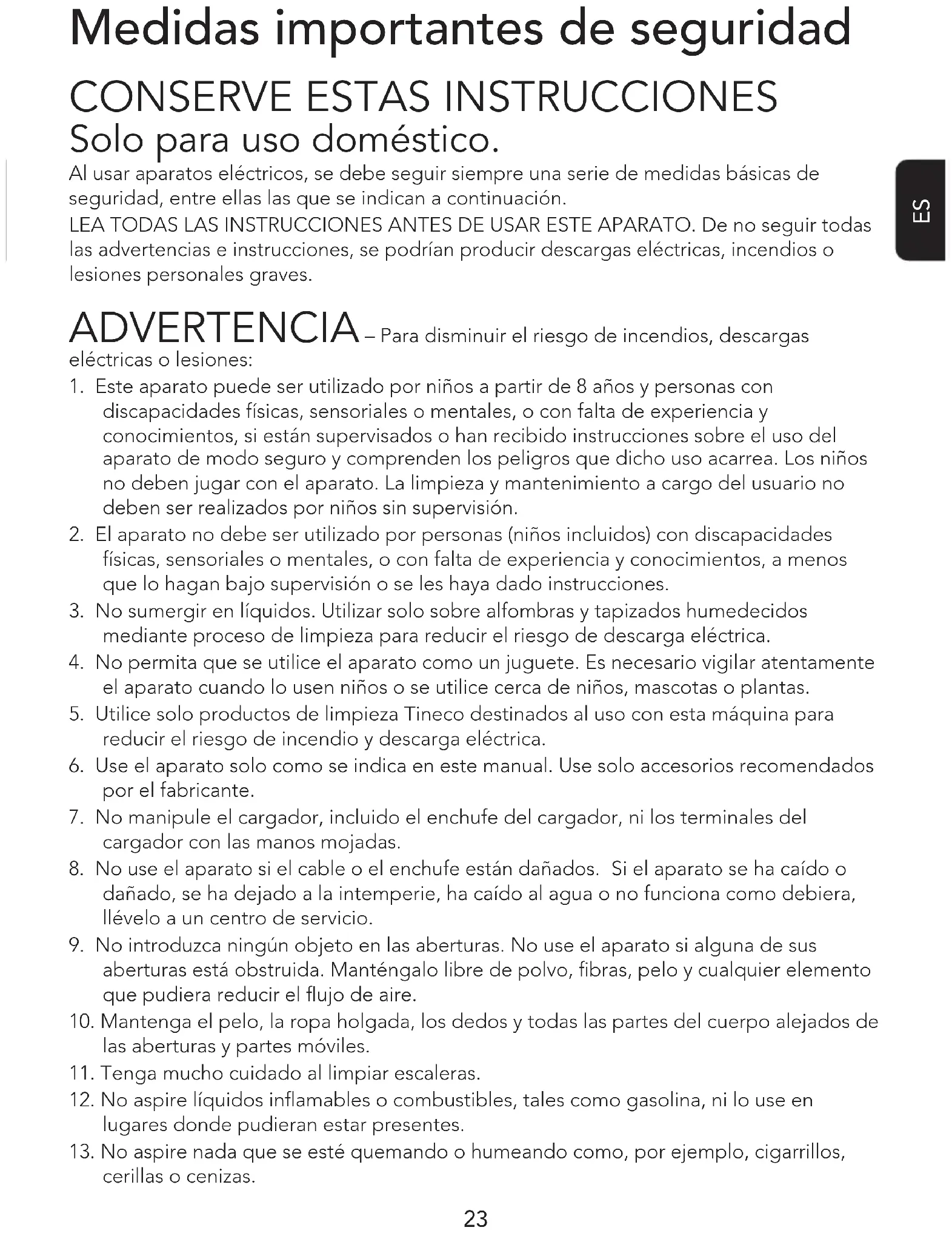 ALFOMBRAS TINECO pensada para utilizar con el aparato a n de reducir el riesgo de incendio y descarga eléctrica debido a daños de los componentes internos. Acerca del aparato