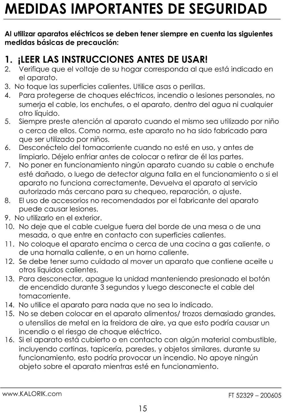 MANUAL DE USUARIO FT 52329 SS KALORIK