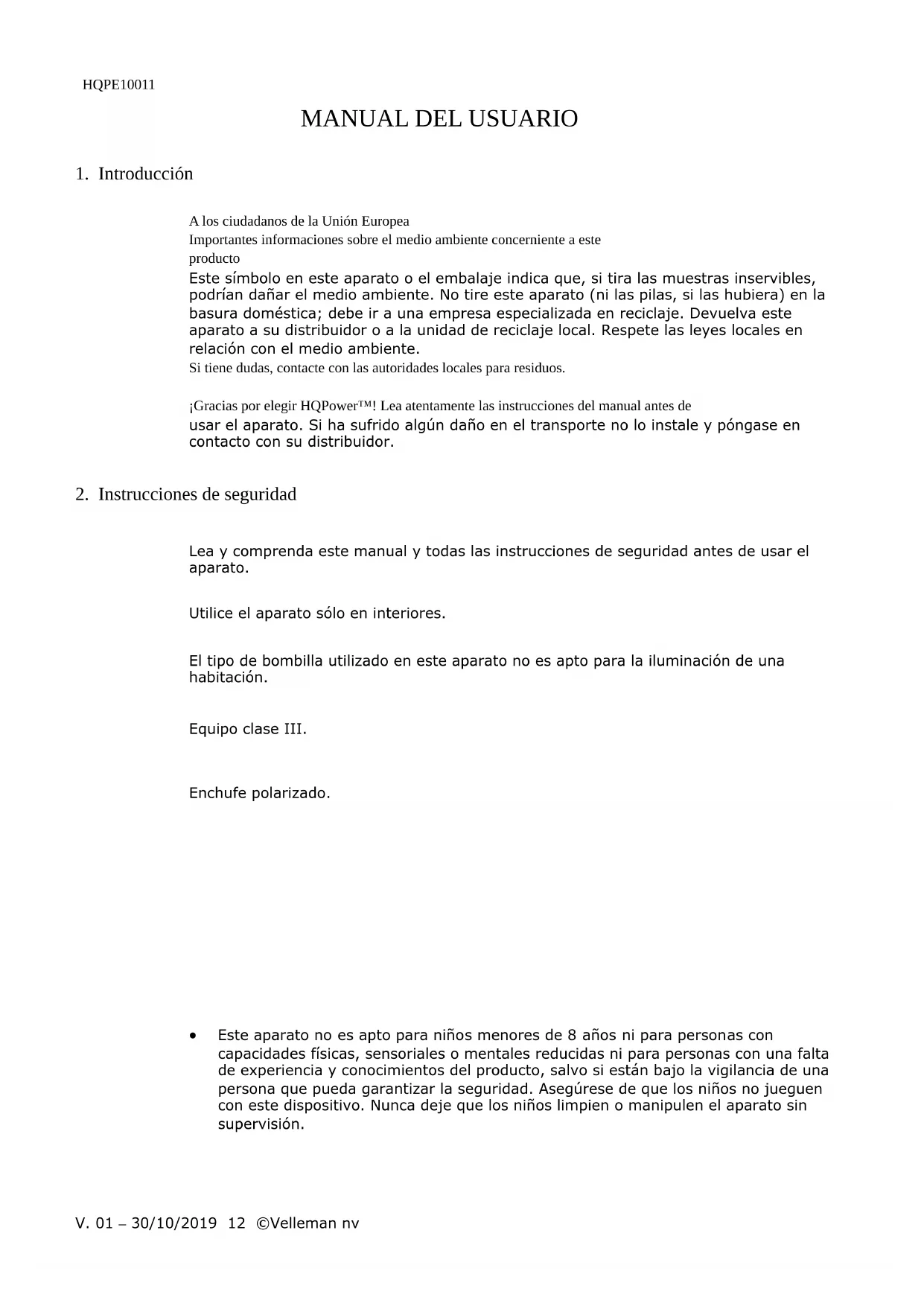 MANUAL DE USUARIO HQPE10011 VELLEMAN