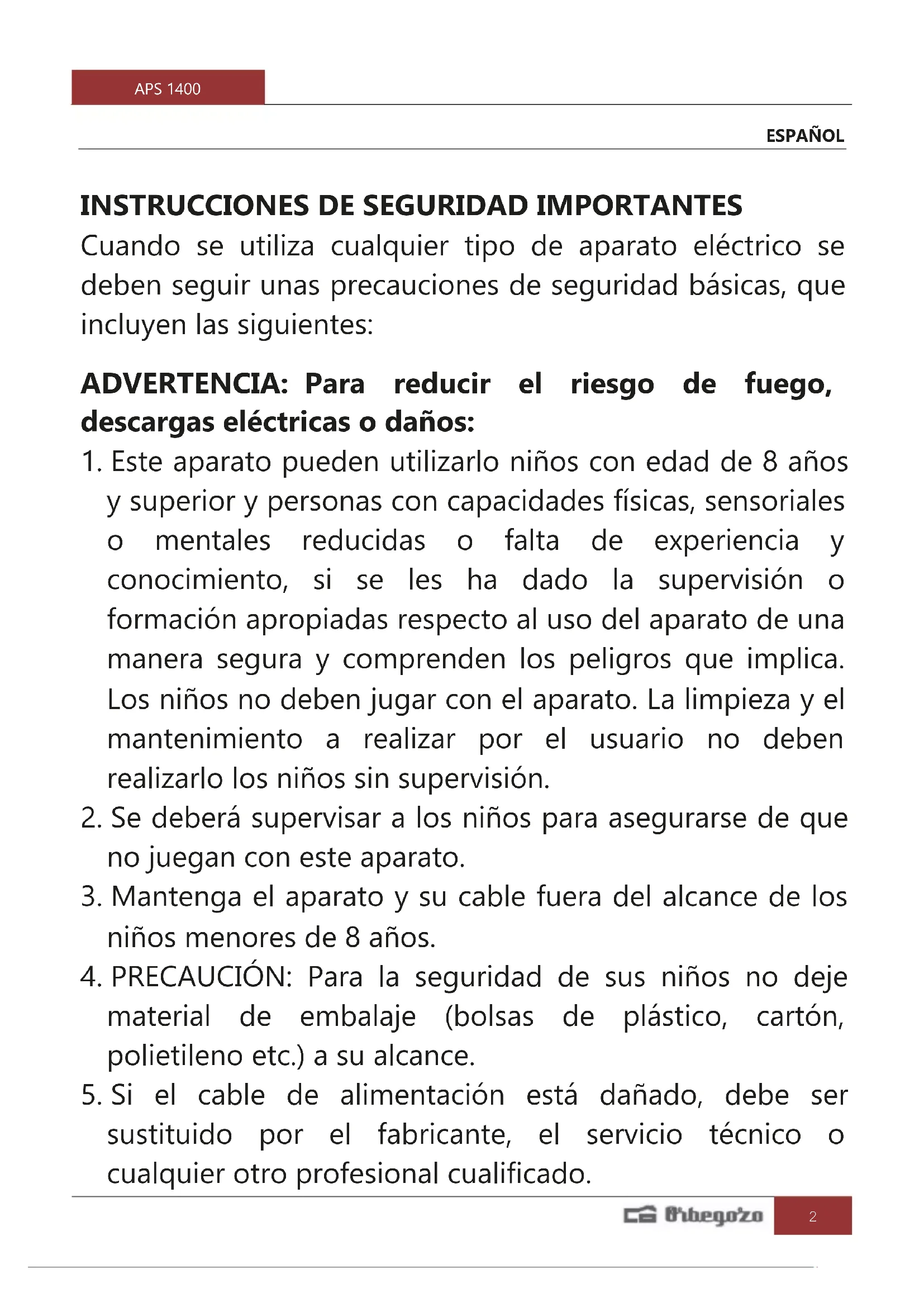 MANUAL DE USUARIO APS 1400 Orbegozo