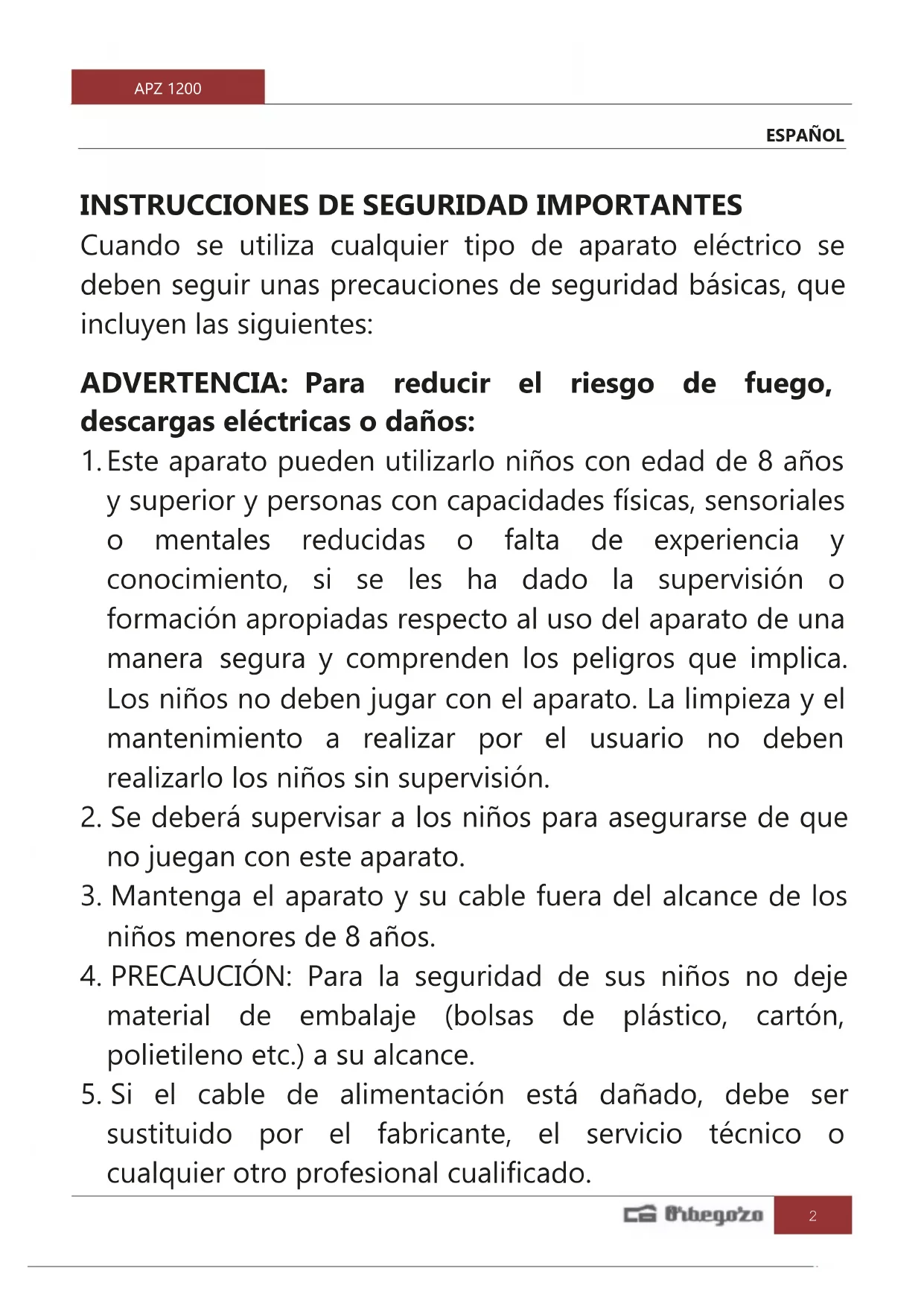 MANUAL DE USUARIO APZ 1200 Orbegozo