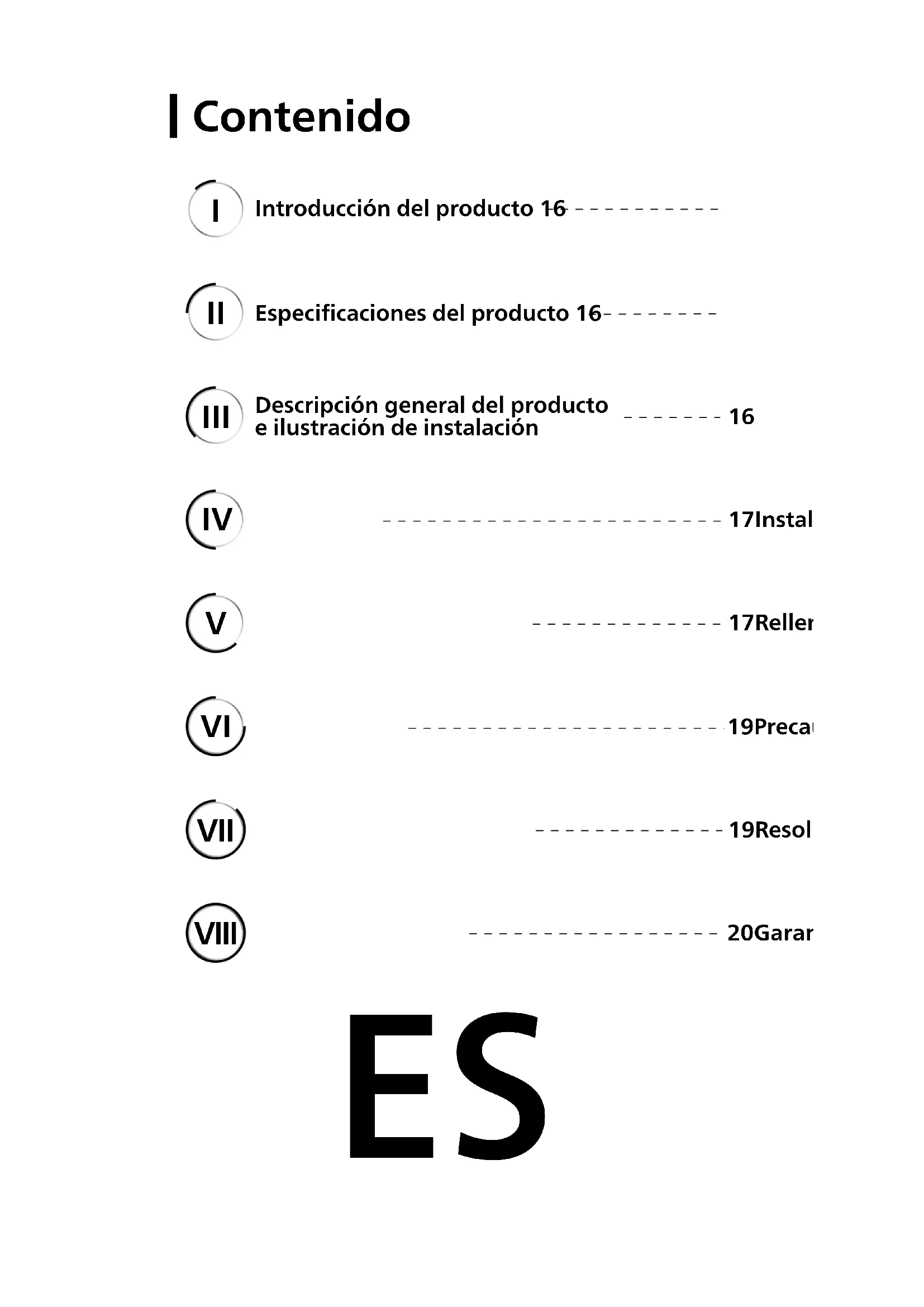 17Instalación 17Rellenar inhibidor de cal 19Precauciones 19Resolución de problemas 20Garantía y servicio