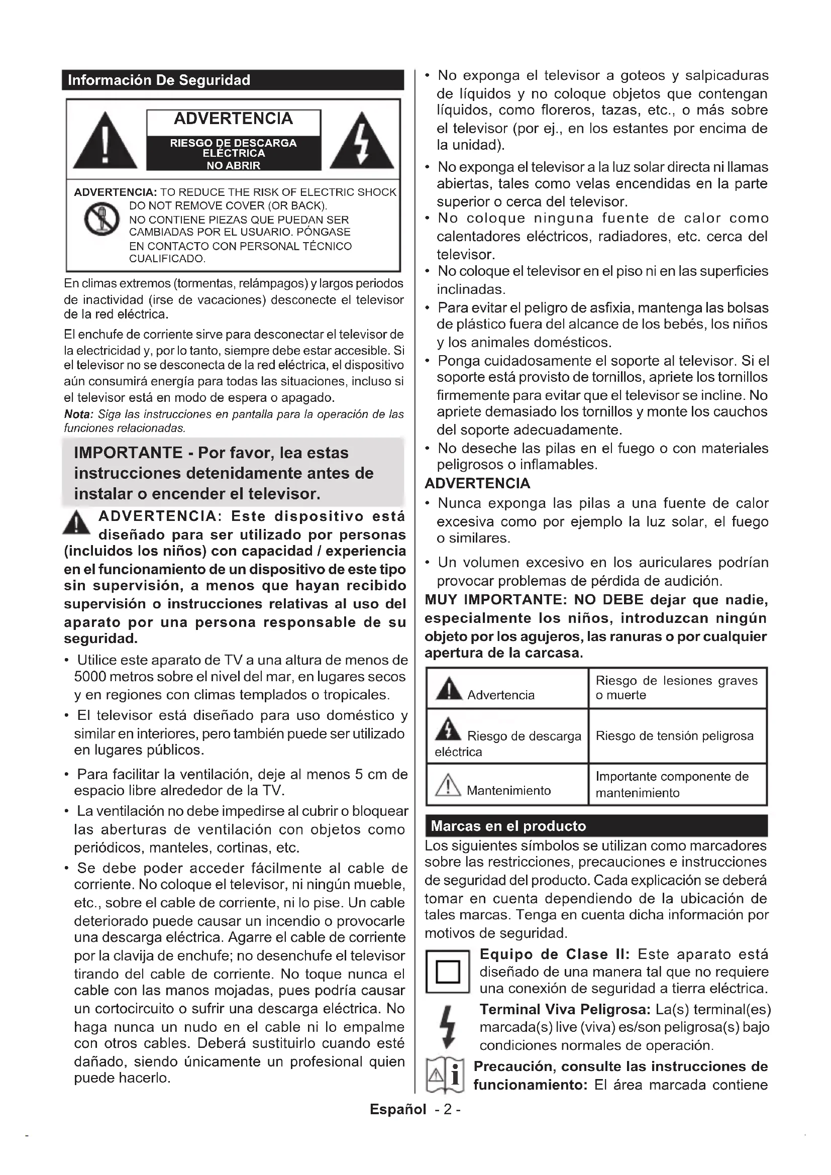 - Si usted piensa que las pilas podrían haber sido ingeridas o estar dentro de cualquier parte del cuerpo, busque atención médica inmediata. – – – – – – – – – – – – Un televisor puede caerse y causar lesiones personales graves o la muerte. Podrá evitar lesiones o heridas, especialmente a los niños, tomando precauciones tan sencillas como: