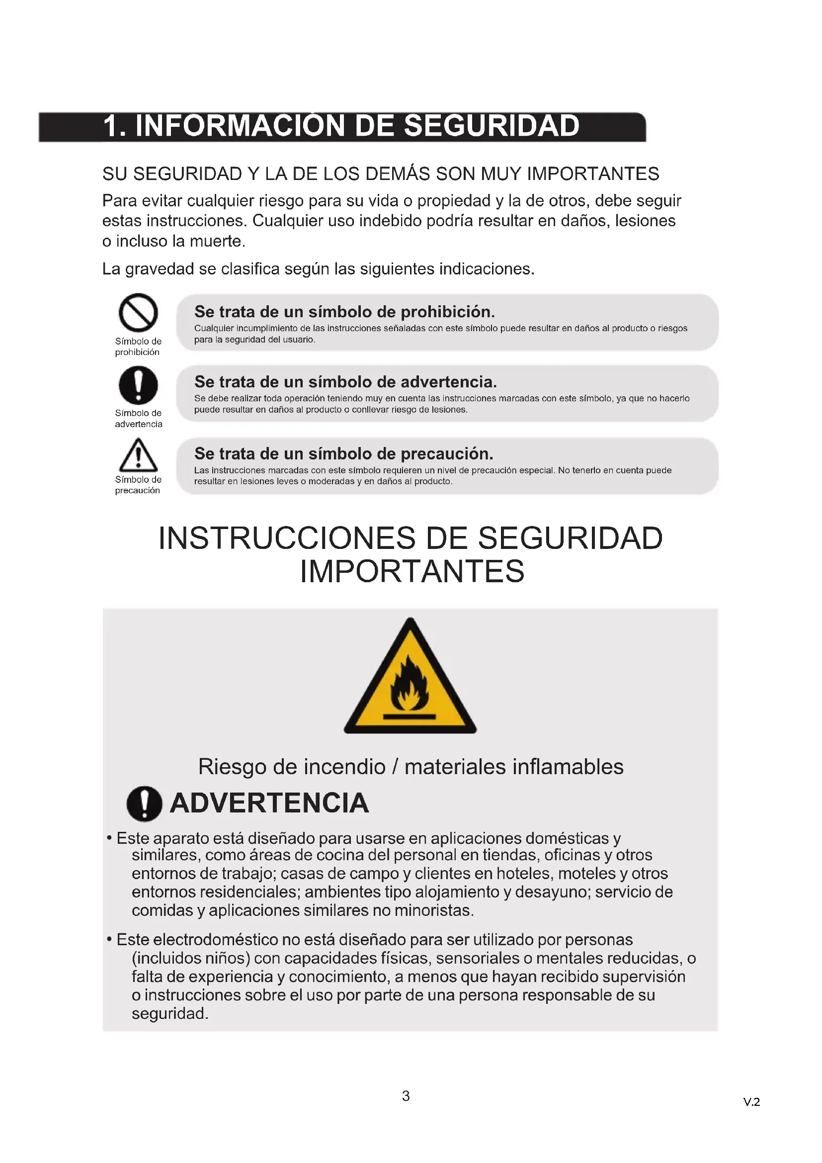 V.2 ES3 Información de SeguridadUso Adecuado del RefrigeradorMantenimiento de RefrigeradorSolución de ProblemasApéndice