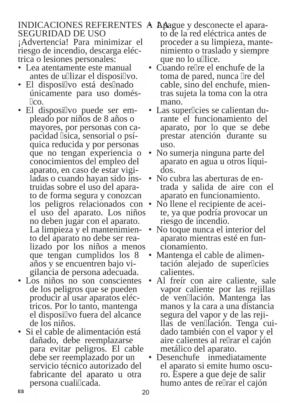 - Al freír con aire caliente, sale vapor caliente por las rejillas de venlación. Mantenga las manos y la cara a una distancia segura del vapor y de las reji- llas de venlación. Tenga cui- dado también con el vapor y el aire calientes al rerar el cajón metálico del aparato.