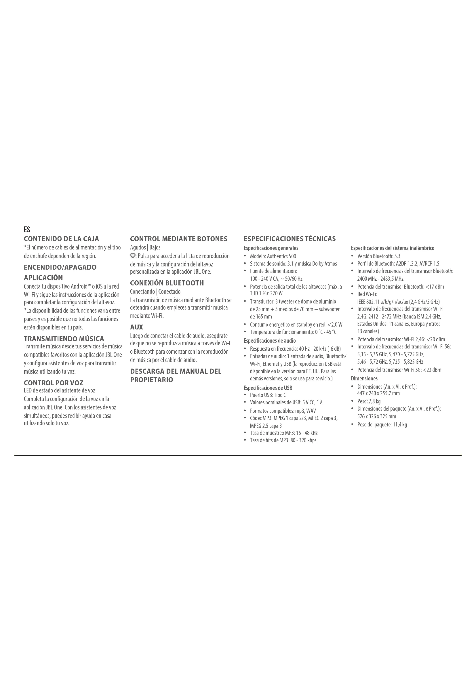 Encuentra gratis el manual del aparato Authentics 500 JBL en formato PDF.
