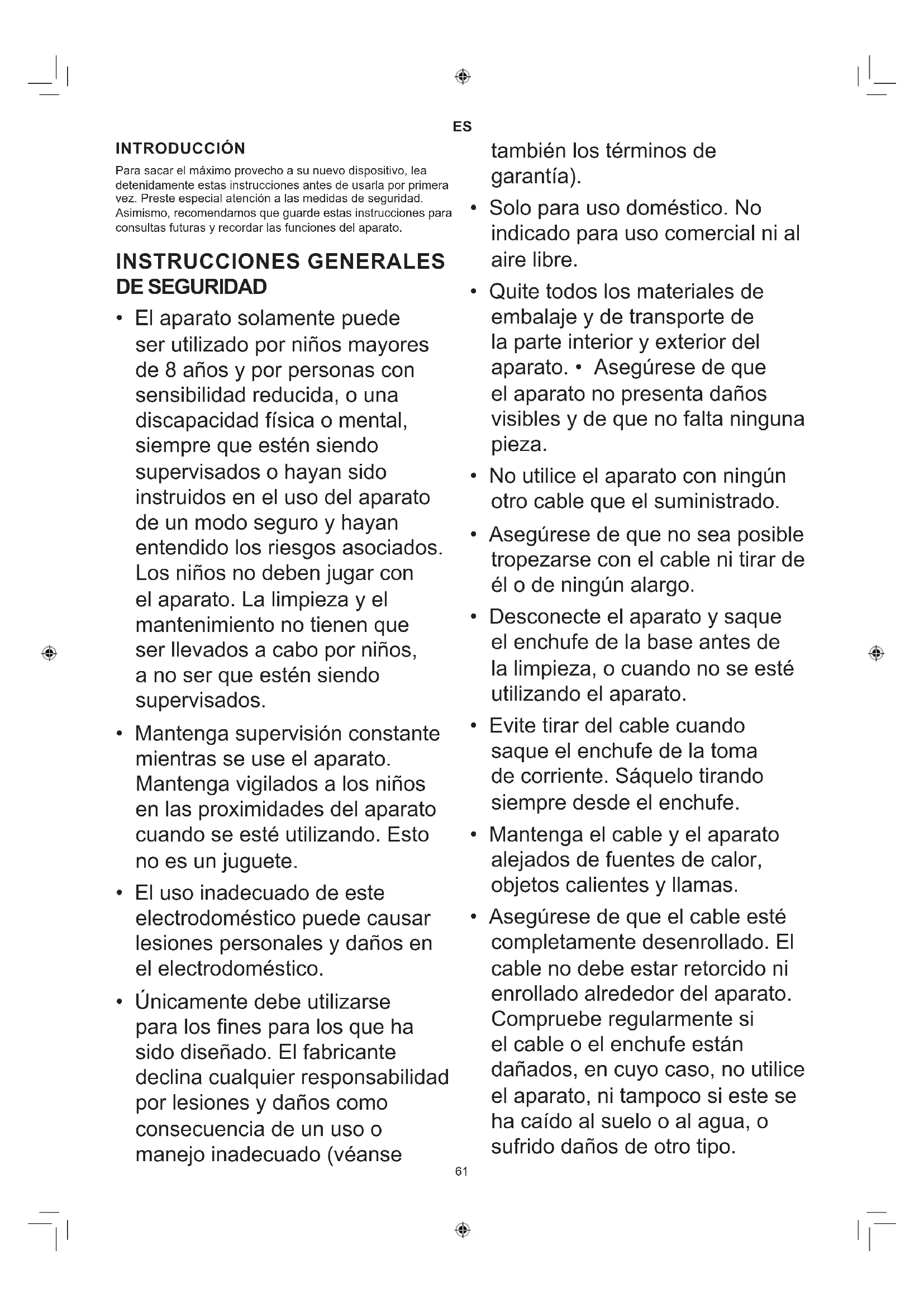 - Solo para uso doméstico. No indicado para uso comercial ni al aire libre.