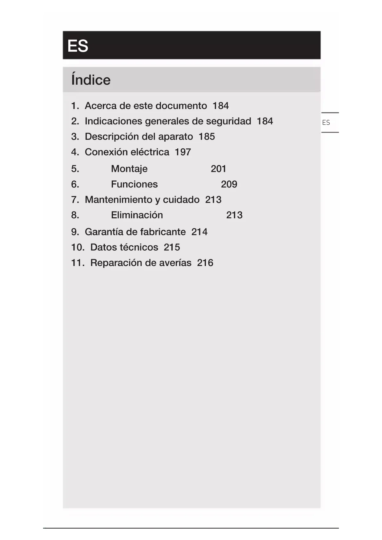 - Llevar a cabo los ajustes. % “6. Funciones”ES – 209 – Índice