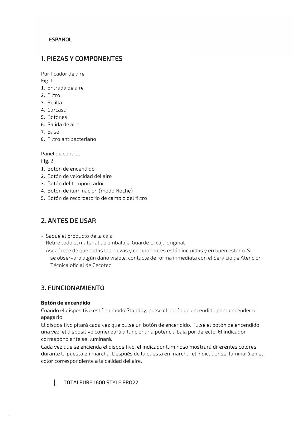 MANUAL DE USUARIO TotalPure 1600 Style CECOTEC