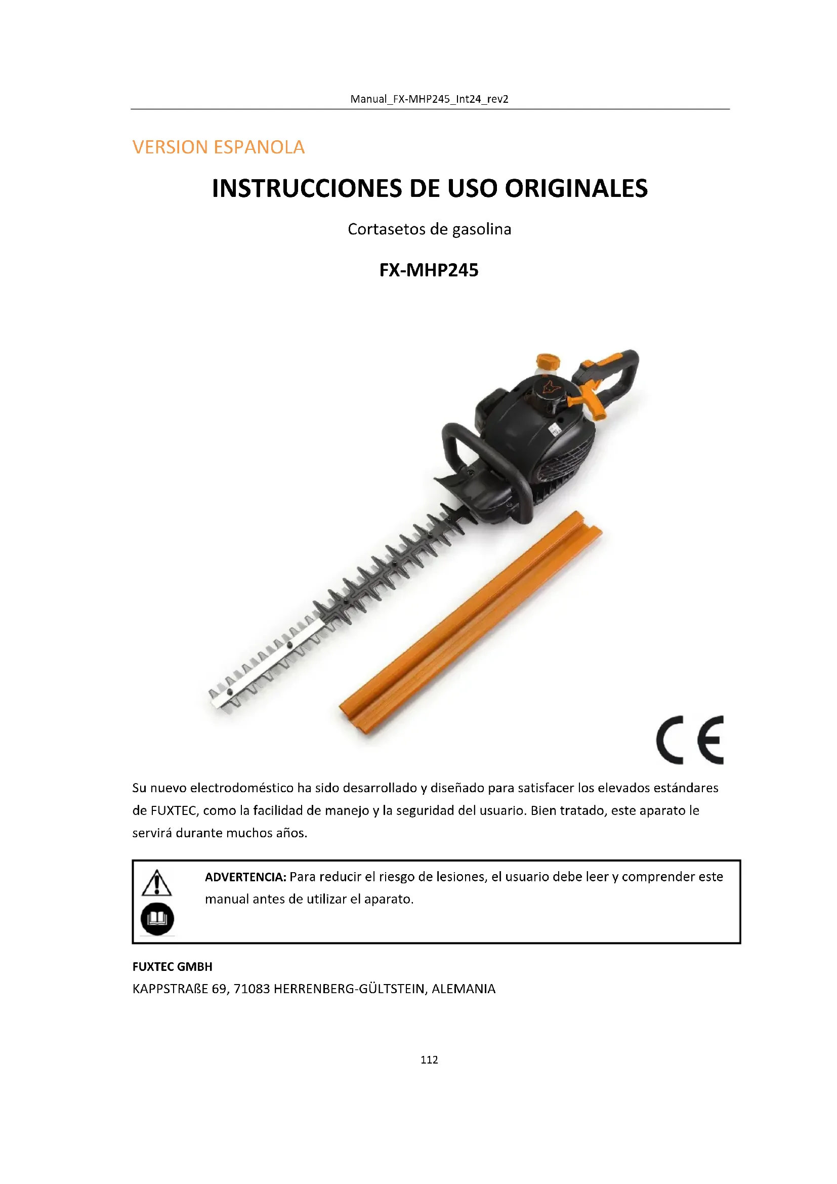 FX-MHP245 - Cortasetos Fuxtec - Manual de uso y guía de instrucciones gratis