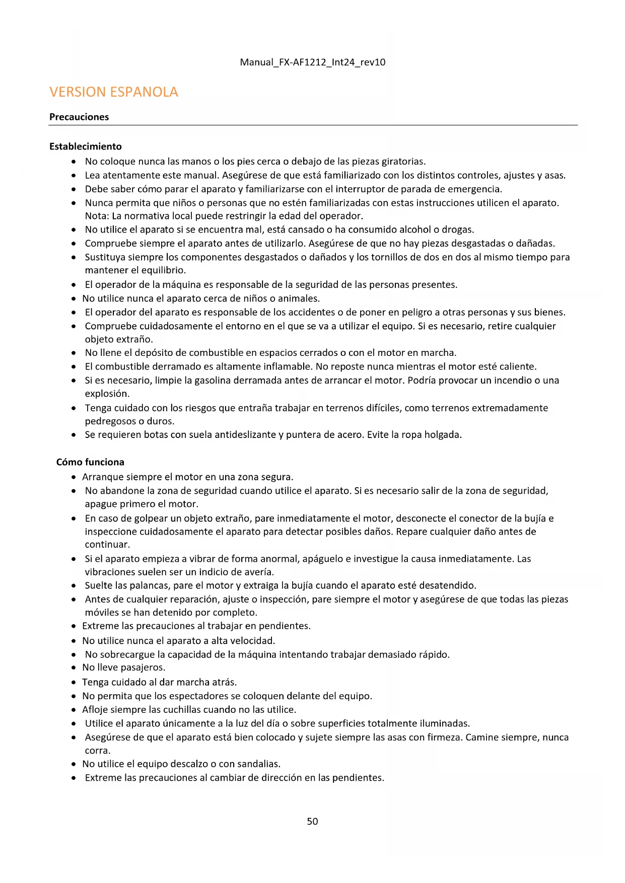 - Extreme las precauciones al cambiar de dirección en las pendientes.Manual_FX-AF1212_Int24_rev10
