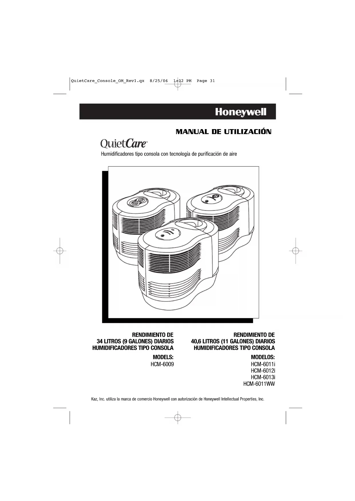 QuietCare HCM-6011i - Humidificador HONEYWELL - Manual de uso y guía de instrucciones gratis