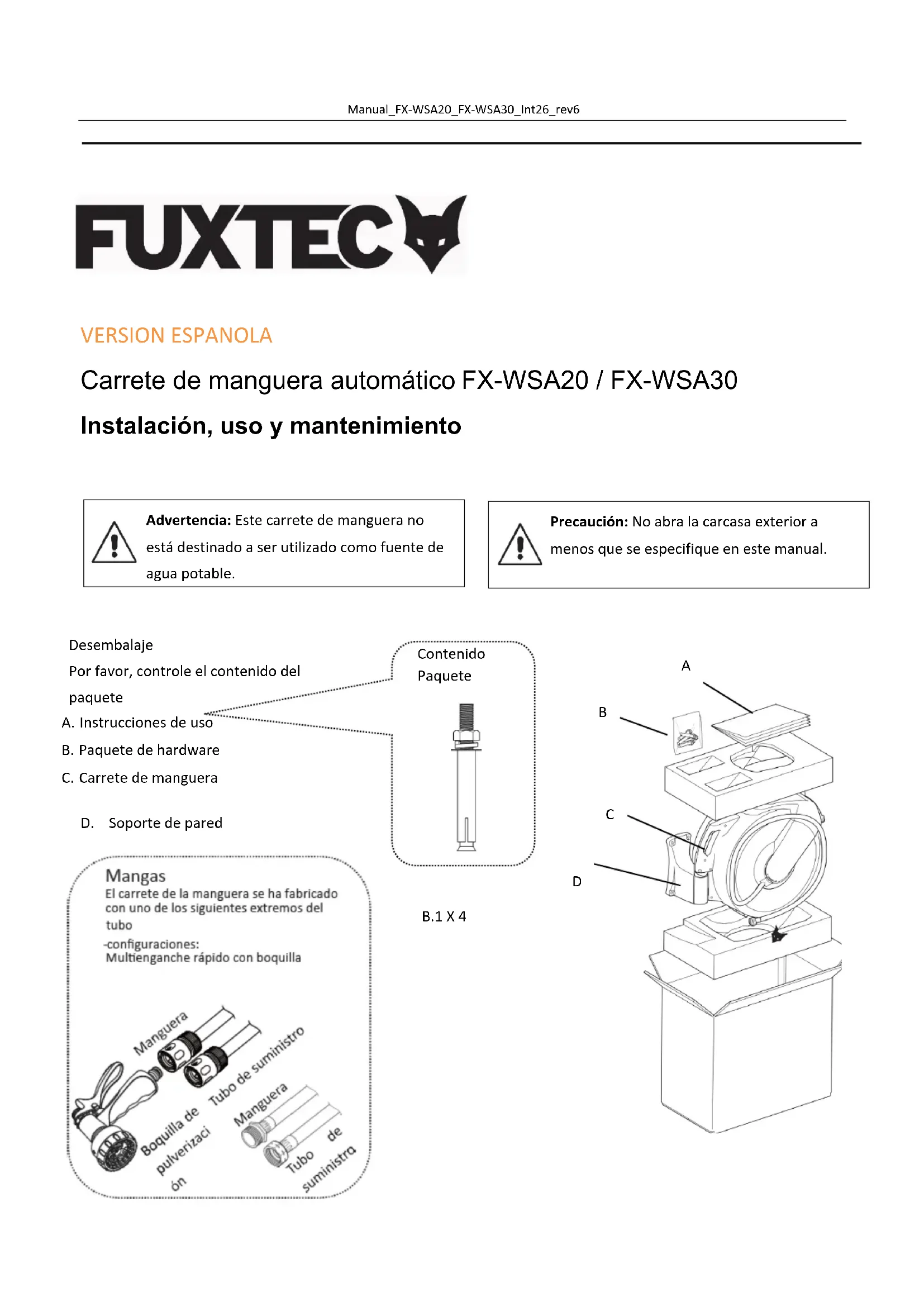 VERSION ESPANOLA Carrete de manguera automático FX-WSA20 / FX-WSA30 Instalación, uso y mantenimiento