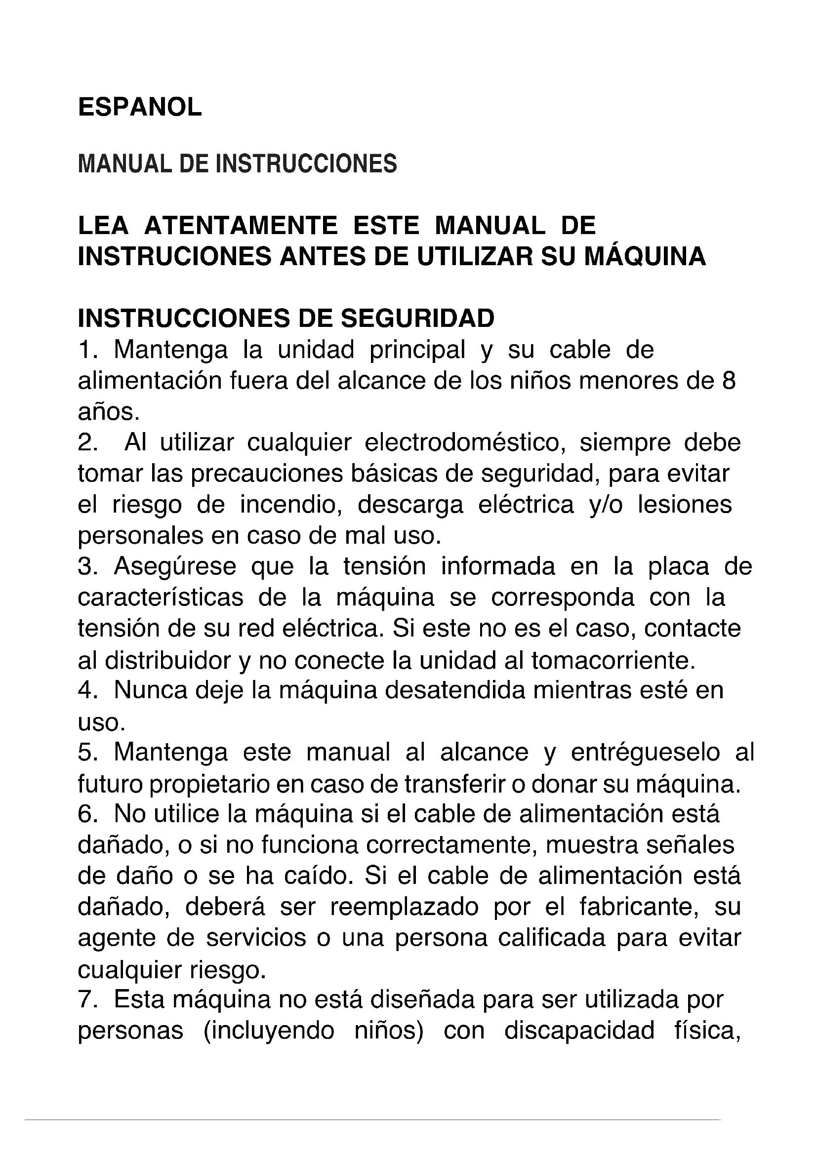 INSTRUCIONES ANTES DE UTILIZAR SU MÁQUINA