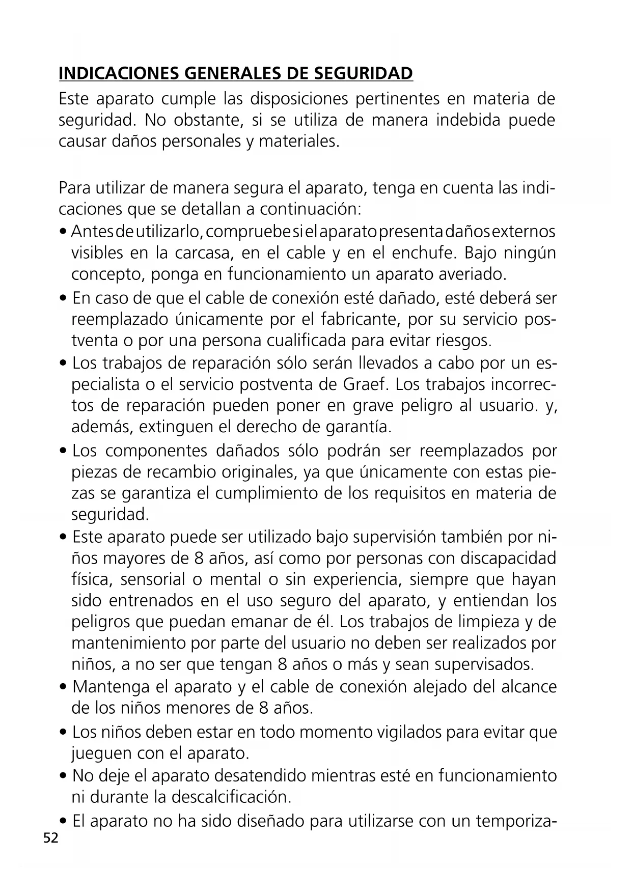 - ÍNDICE Indicaciones generales de seguridad p. 52