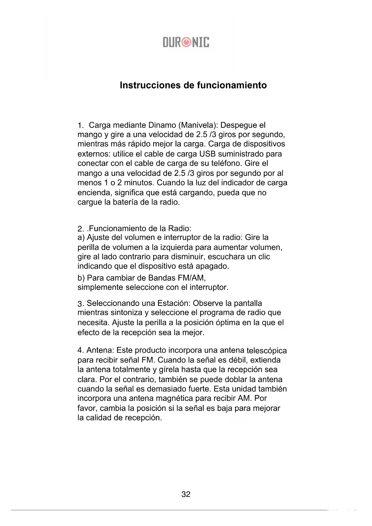 Ecohand - Radio Duronic - Manual de uso y guía de instrucciones gratis