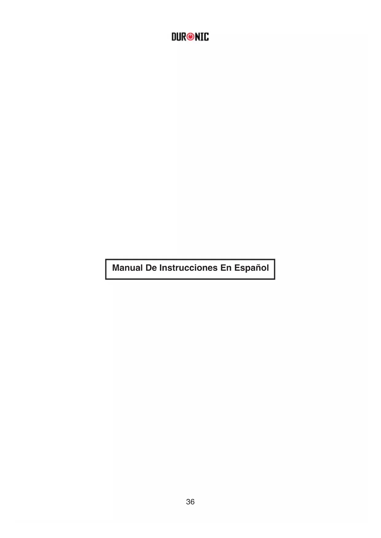 No intente nunca sustituir las piezas ni reparar el aparato usted mismo. No modifique el aparato de ninguna manera que no esté descrita en las instrucciones de uso. El aparato contiene piezas bajo tensión. Las reparaciones sólo pueden ser realizadas por Duronic, utilizando repuestos y accesorios originales.