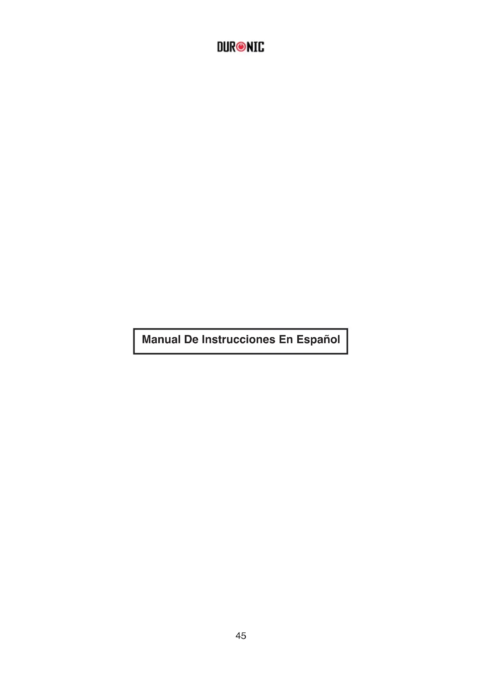 No intente nunca sustituir las piezas ni reparar el aparato usted mismo. No modifique el aparato de ninguna manera que no esté descrita en las instrucciones de uso. La máquina aparato contiene piezas bajo tensión. Las reparaciones sólo pueden ser realizadas por Duronic utilizando piezas de repuesto y accesorios originales.