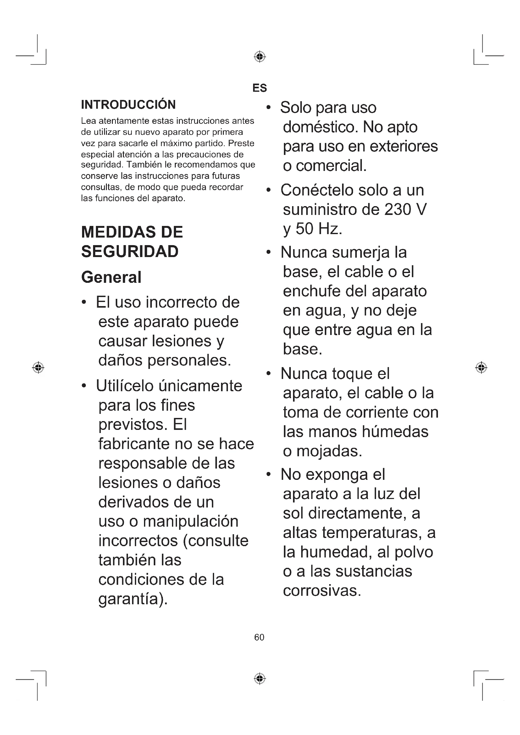 INTRODUCCIÓN Lea atentamente estas instrucciones antes de utilizar su nuevo aparato por primera vez para sacarle el máximo partido. Preste especial atención a las precauciones de seguridad. También le recomendamos que conserve las instrucciones para futuras consultas, de modo que pueda recordar las funciones del aparato. MEDIDAS DE SEGURIDAD General